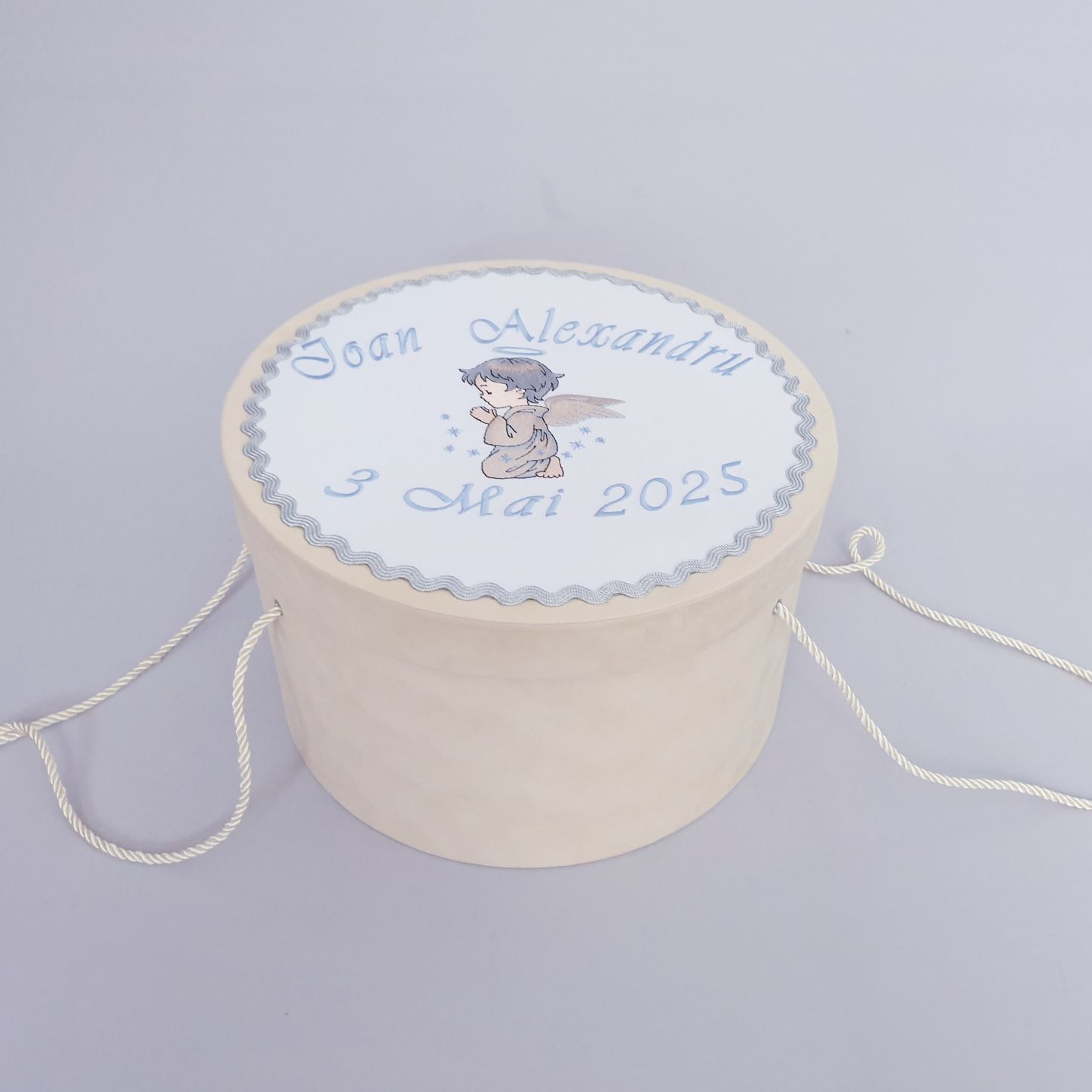 Cutie Trusou Botez Personalizata Ingeras,catifea crem