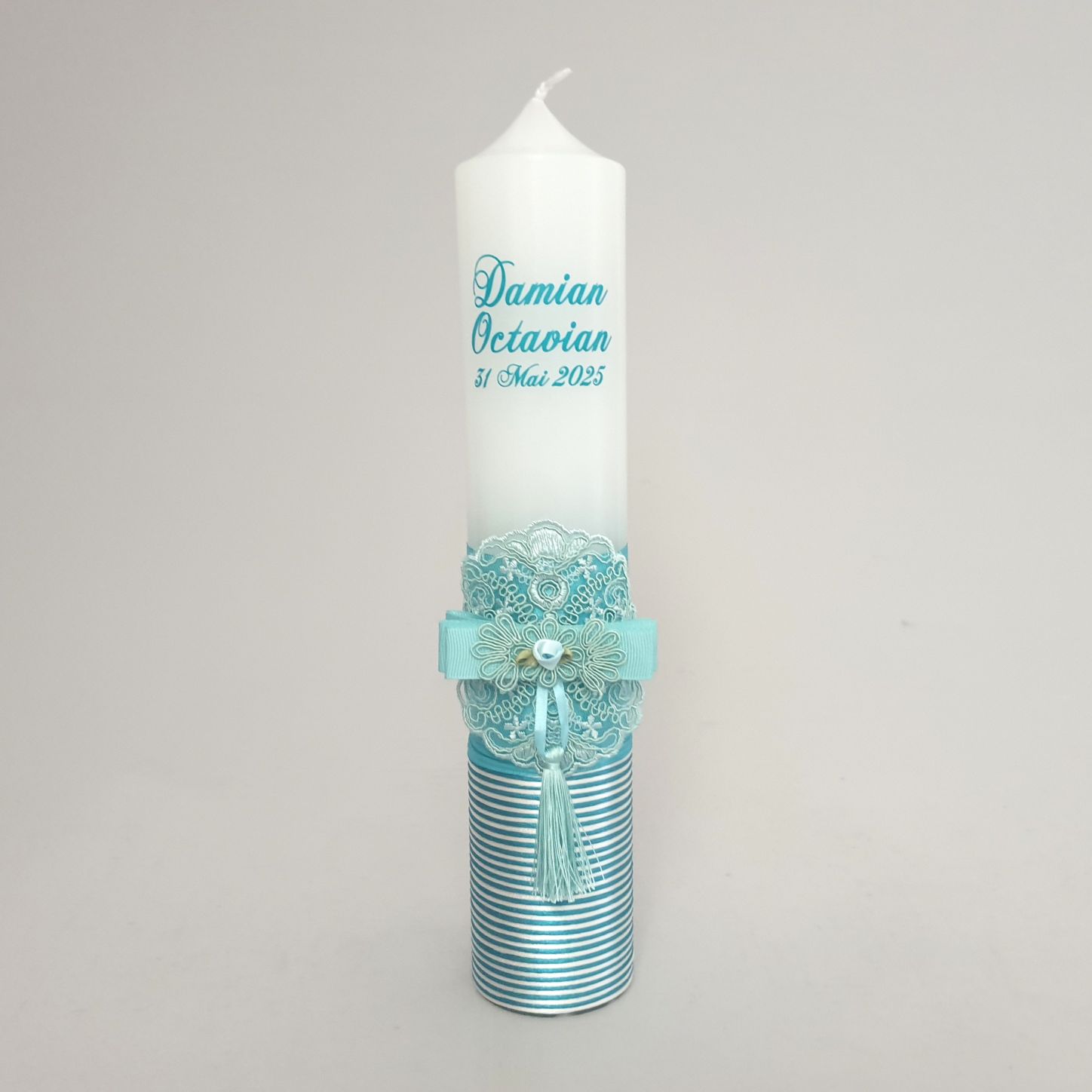 Lumanare Botez din Ceara Naturala culoare Bleu