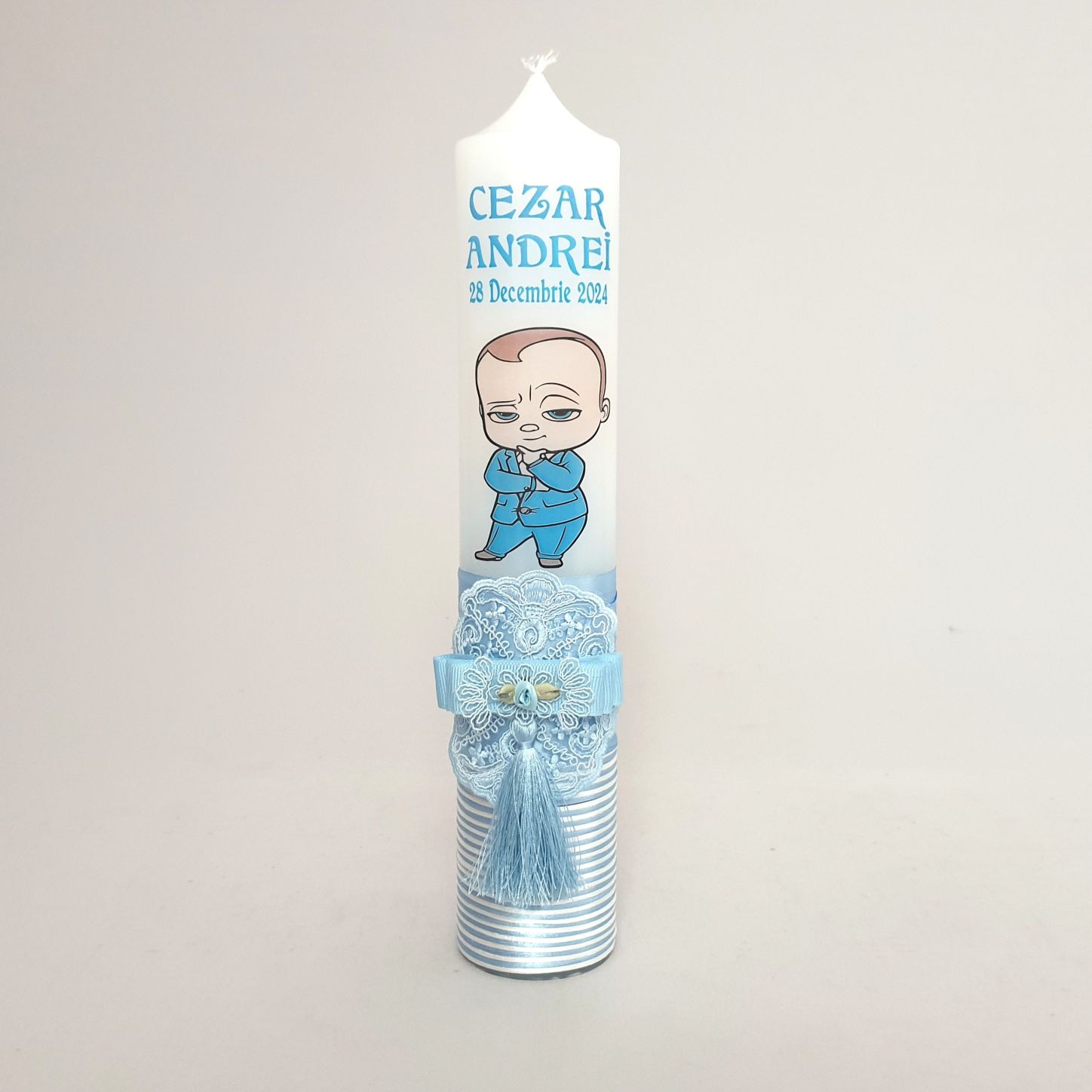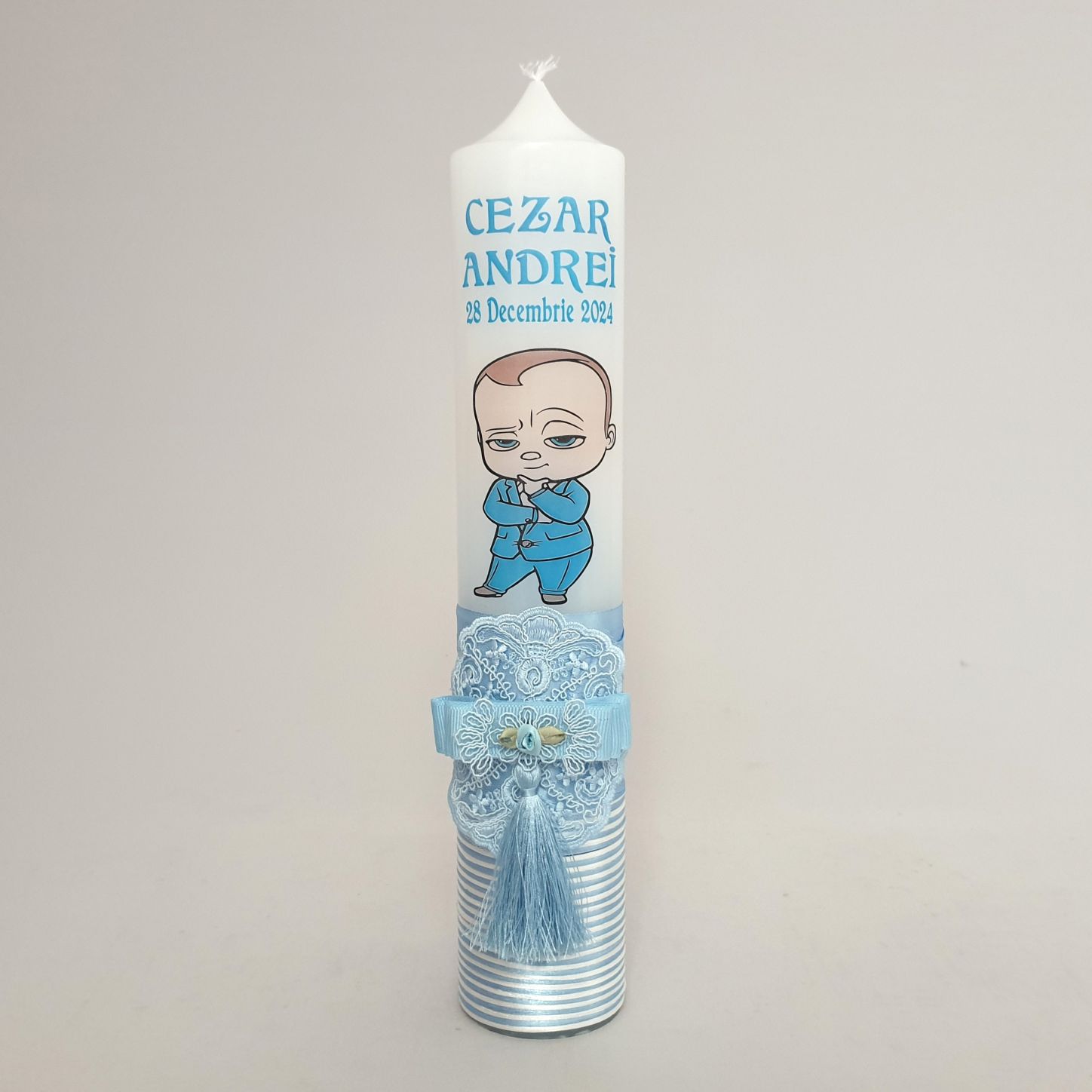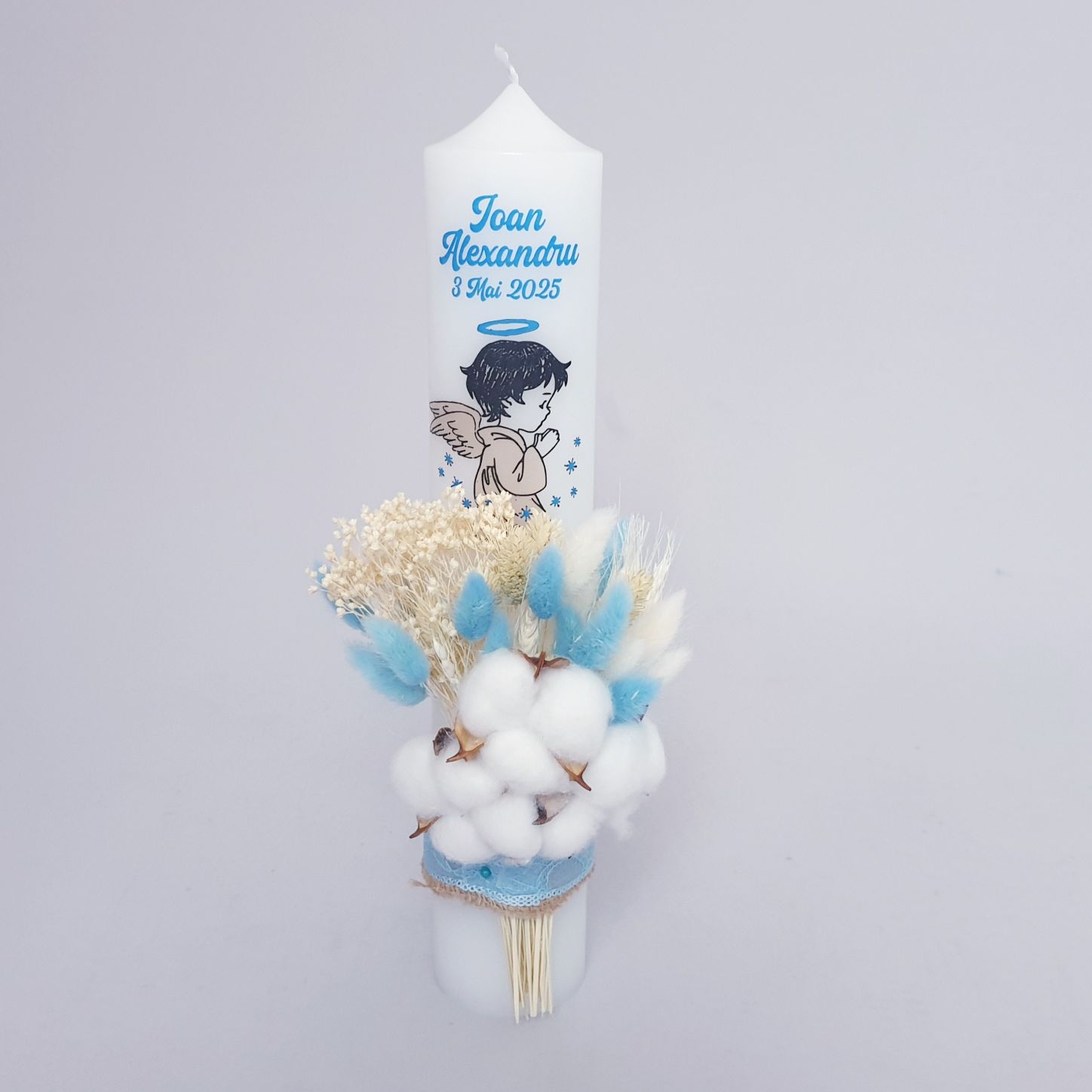 Lumanare Botez Baieti Personalizata Ingeras crem-bleu