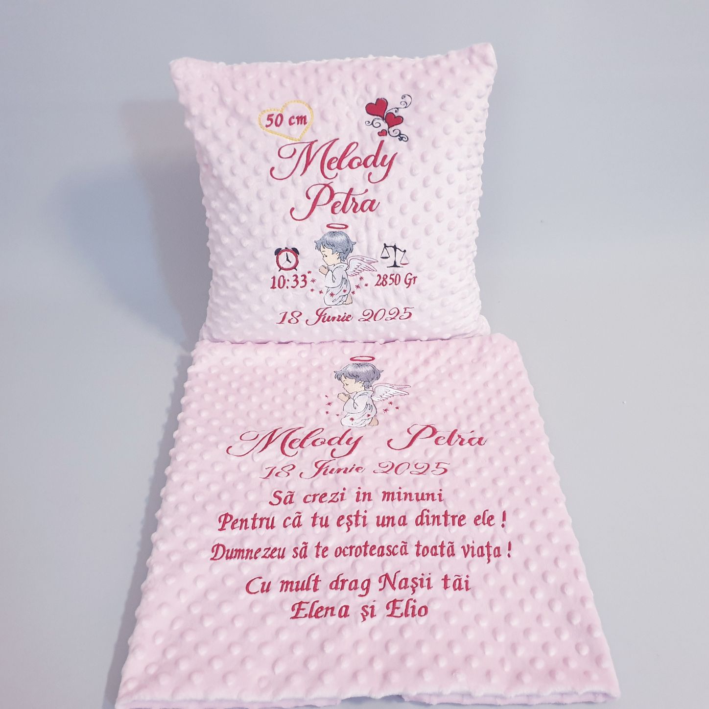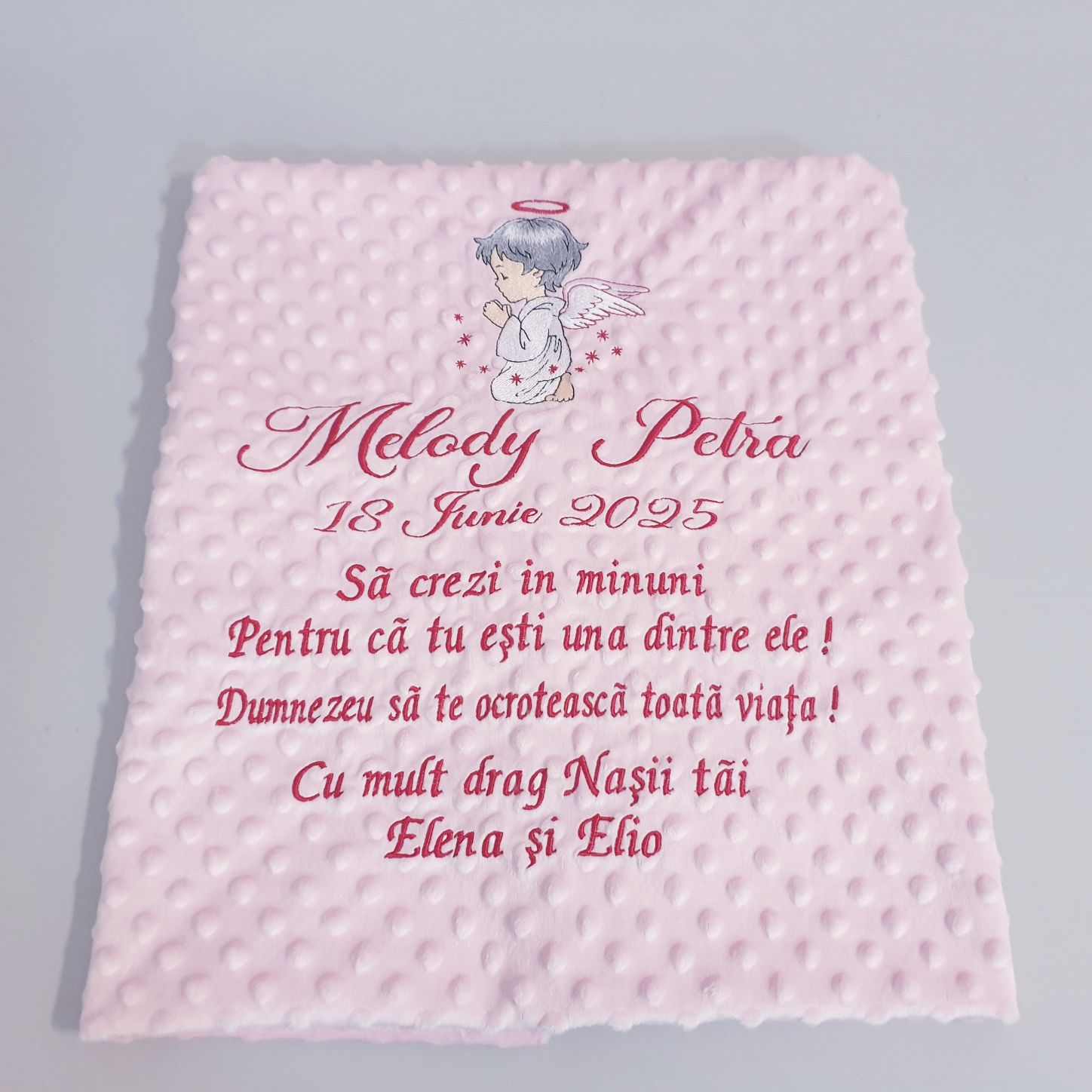 Paturica roz pentru fetite Personalizata cu Ingeras