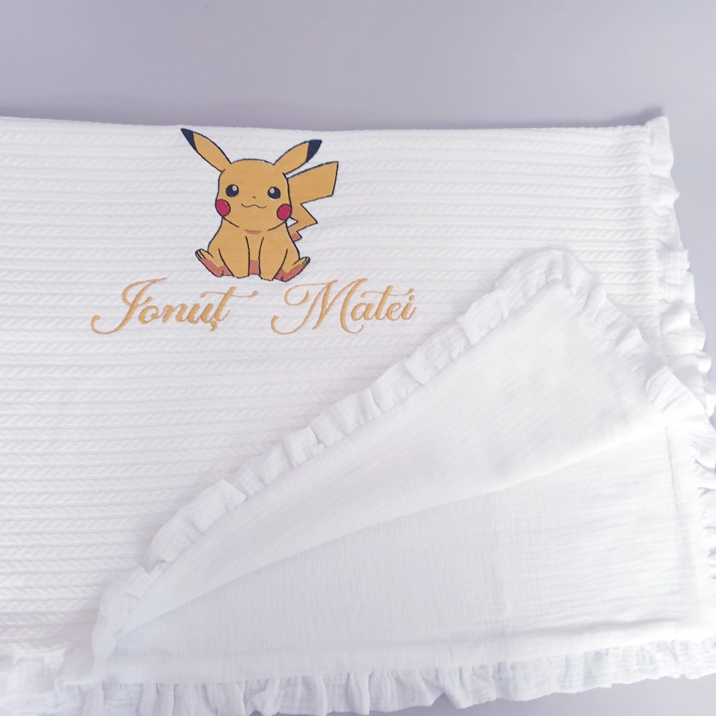 Paturica tricotata verso muselina cu volanas Personalizata Pokemon Pikachu