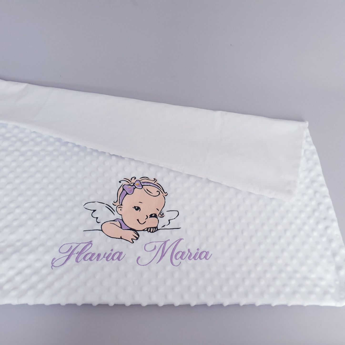 Paturica dubla muselina Personalizata Ingeras,cu dantela,alba,80×100 cm