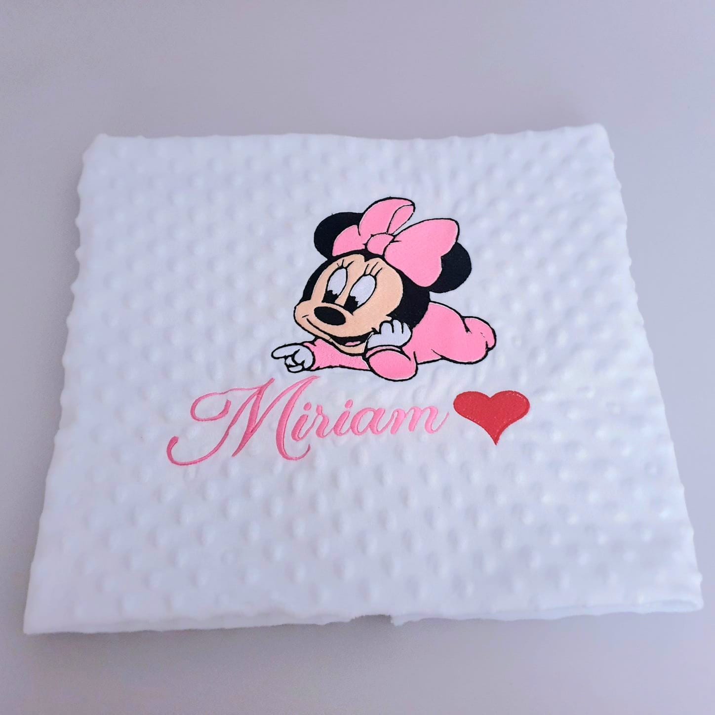 Paturica roz pentru fetite Personalizata cu Minnie Mouse