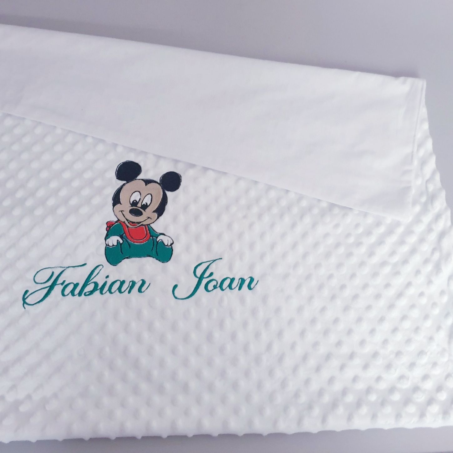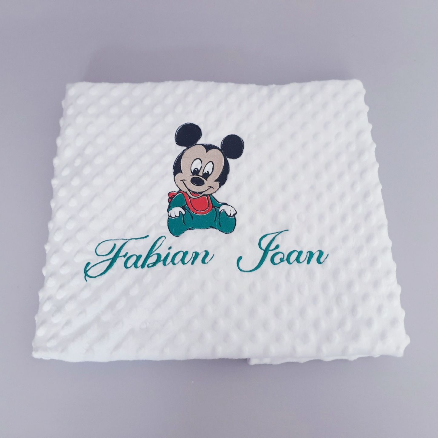 Paturica Minky Alba Personalizata Mickey Mouse Baby