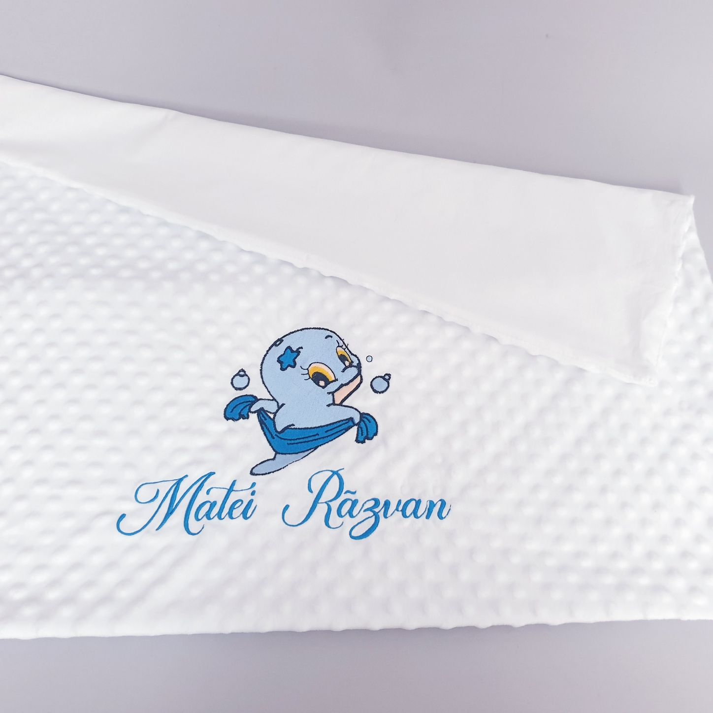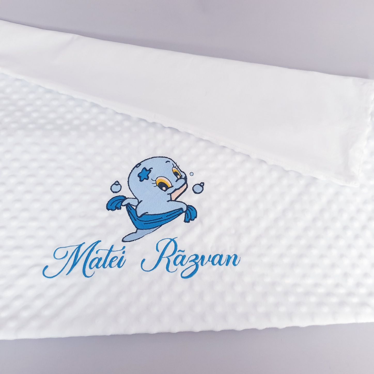 Paturica Botez Alba Leut Personalizata cu mesaj