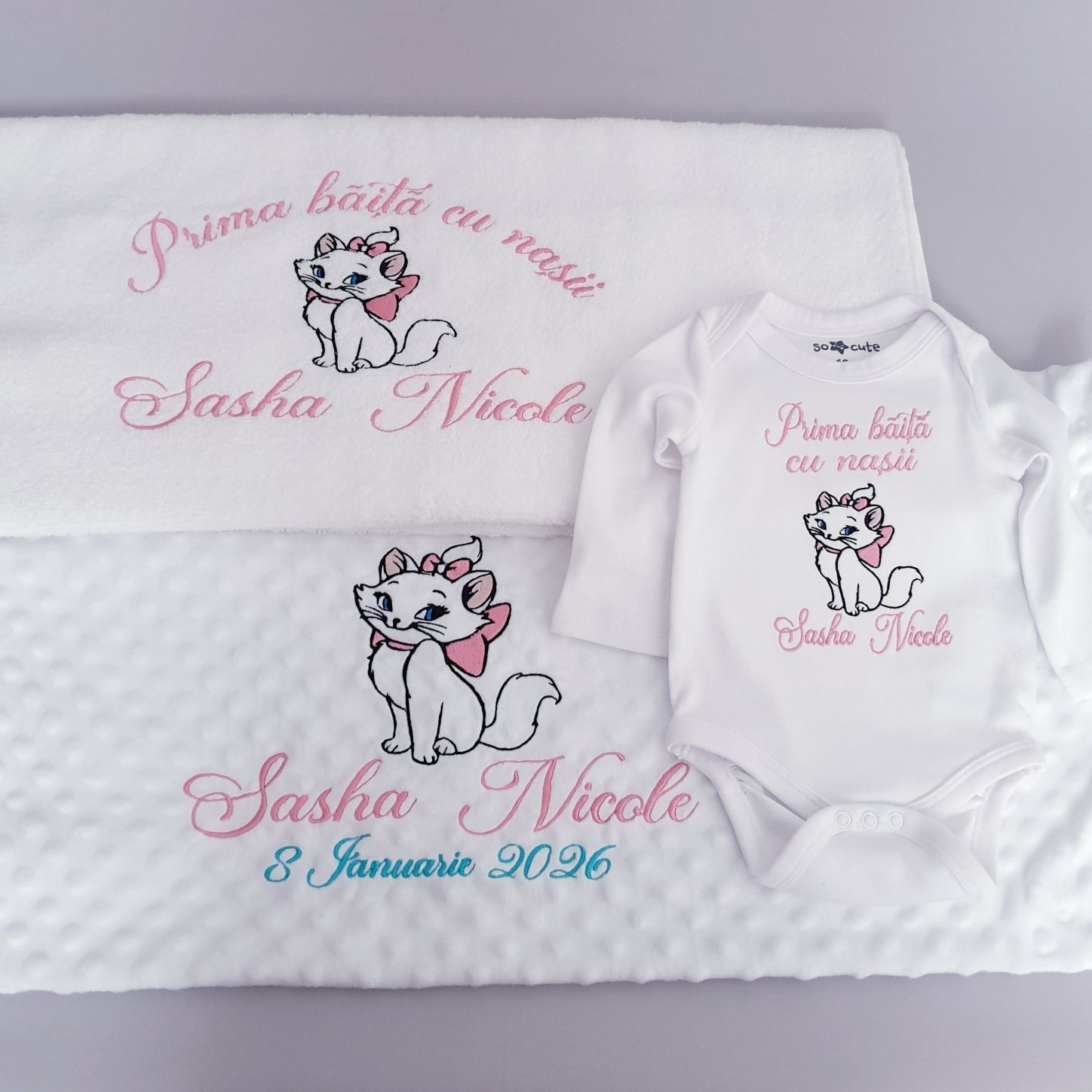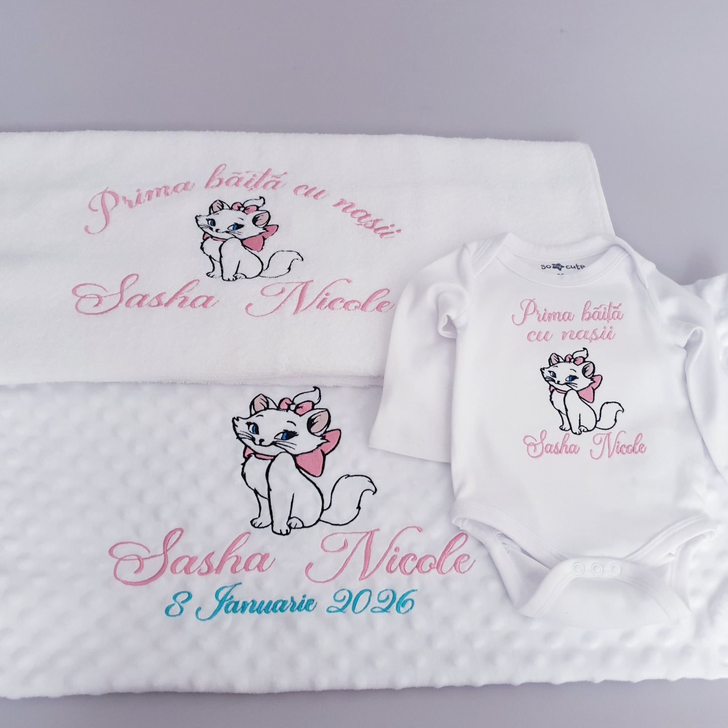 Set pentru baita dupa botez Personalizat Pisica Marie