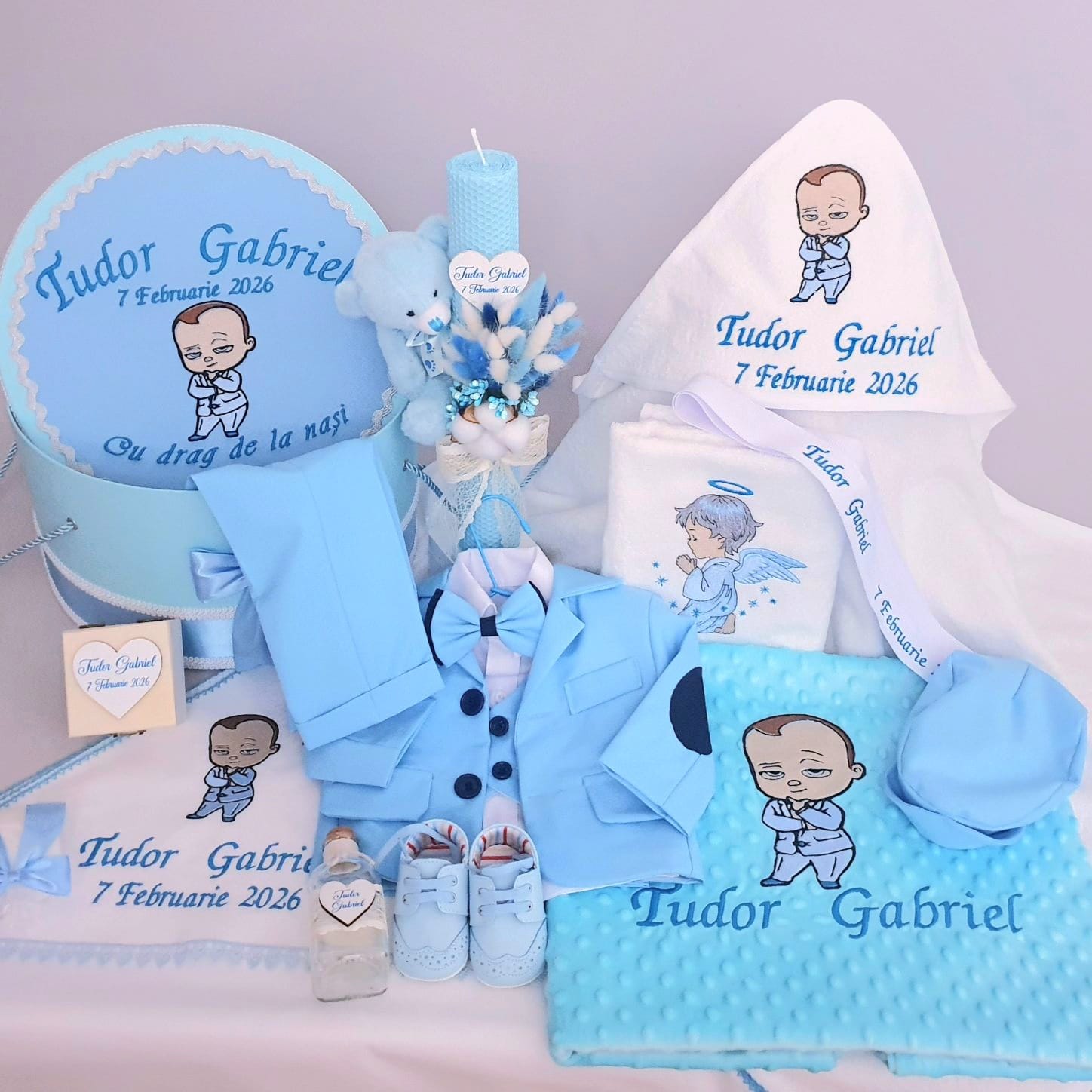 Set Trusou Botez complet Personalizat Baby Boss cu Lumanare ceară naturală