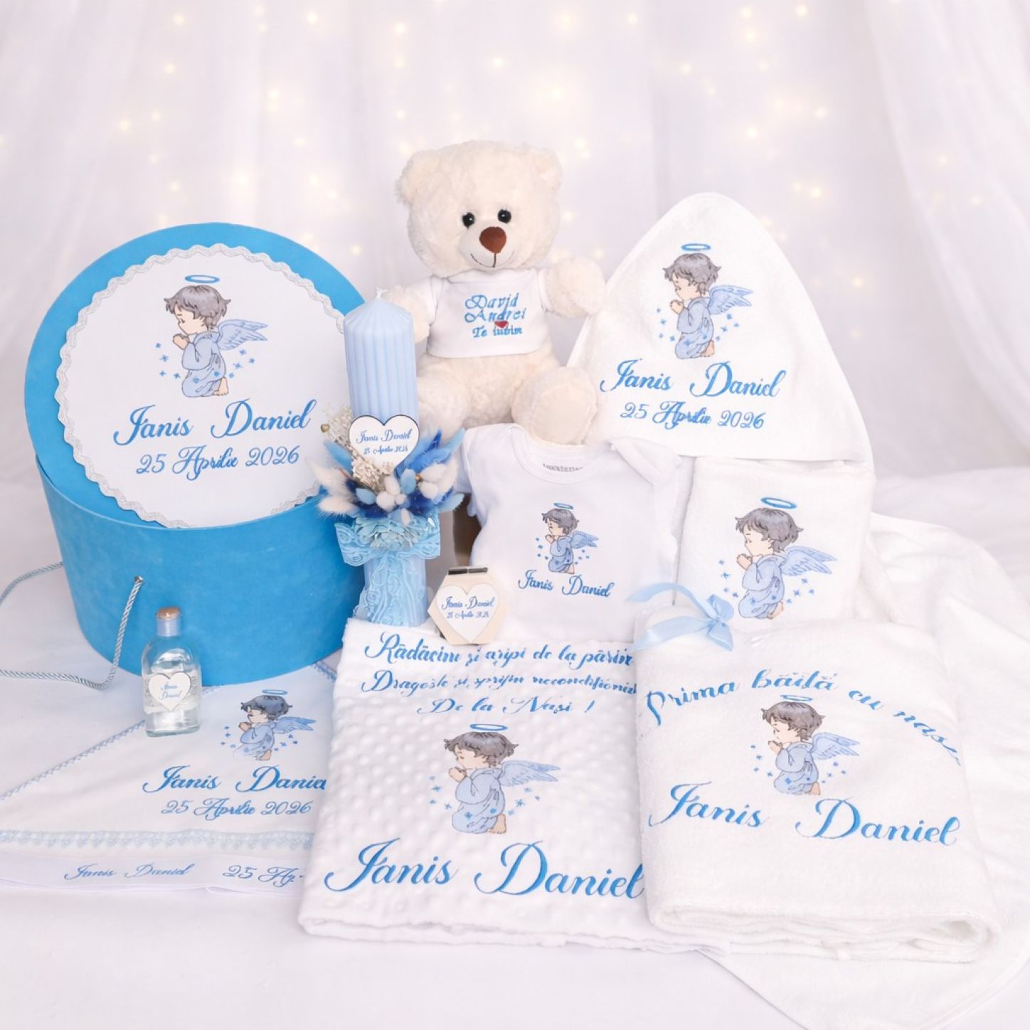 Set Trusou Botez cu Prima Baita Personalizat Ingeras 13 piese