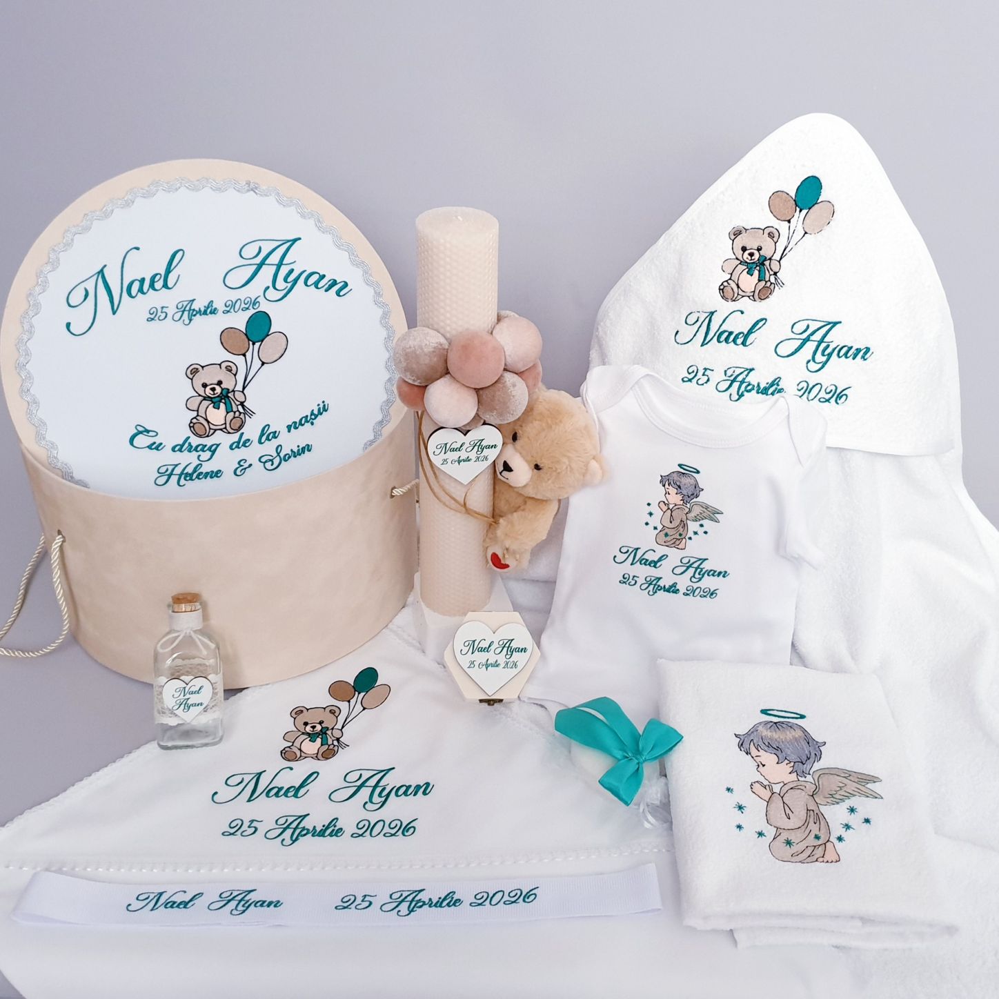 Trusou Botez complet Personalizat Ursulet cu Baloane