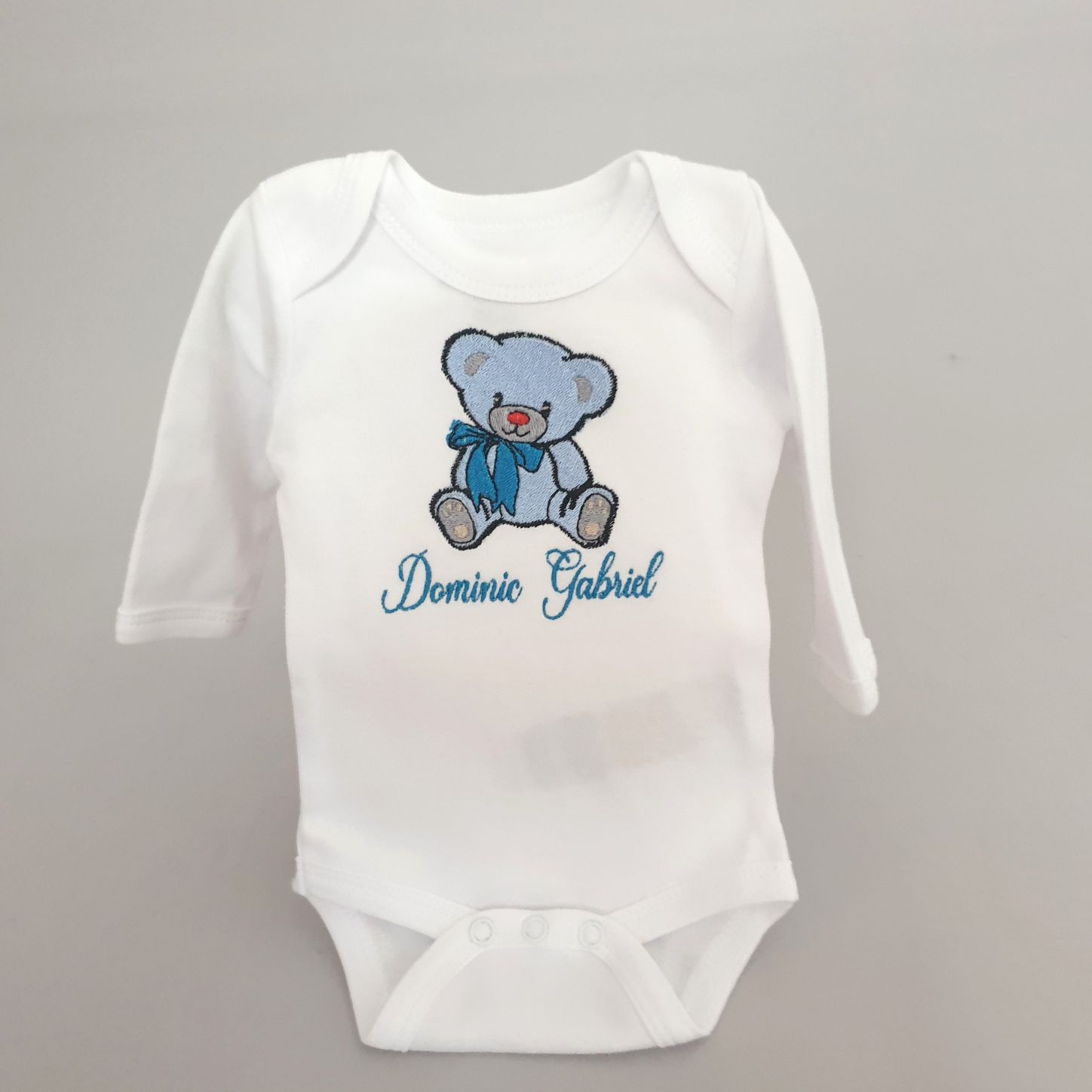 Body Alb Personalizat cu nume+imagine, cu mâneca lunga(sau scurta), din jerseu moale de bumbac ecologic, cu capse între picioare.
