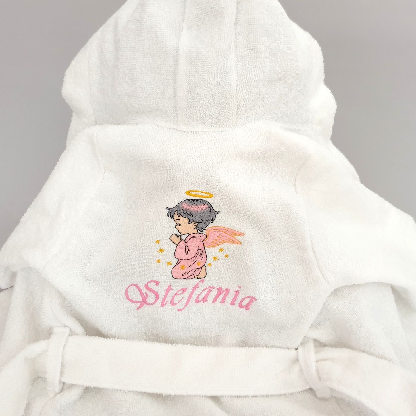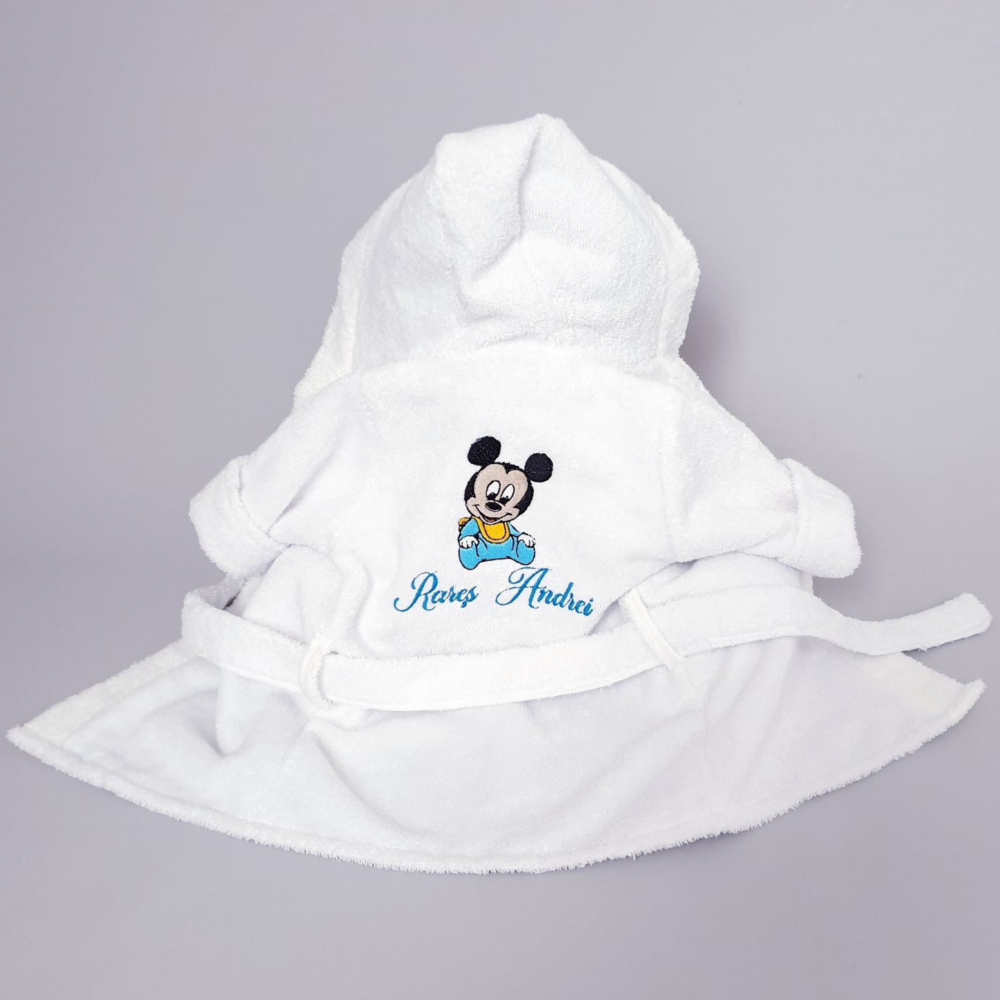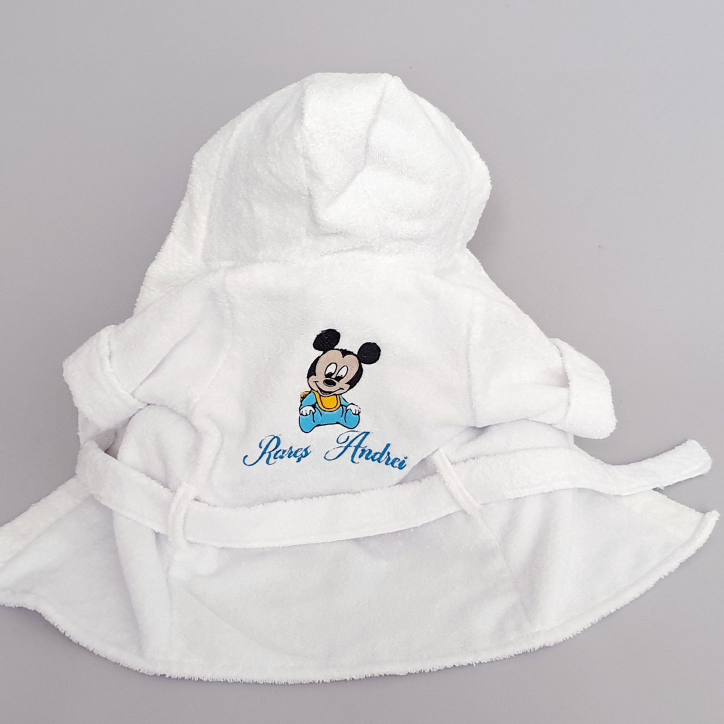 Halatul de baie cu gluga confectionat din frotir/prosop premium, 350g/mp , este fabricat din bumbac 100%. Datorita materialului de calitate superioara, absoabe apa de pe corp rapid dar in acelasi timp incalzaste corpul copilasului. Halatele din prosop premium pentru copilasi dau un sentiment placut de confort chiar si pentru micutii jucausi. Cordonul din talie asigura o fixare cat mai stabila.