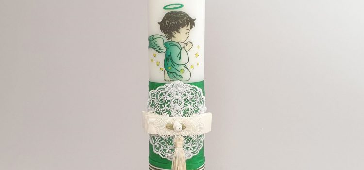 Lumanare de botez personalizata Ingeras verde