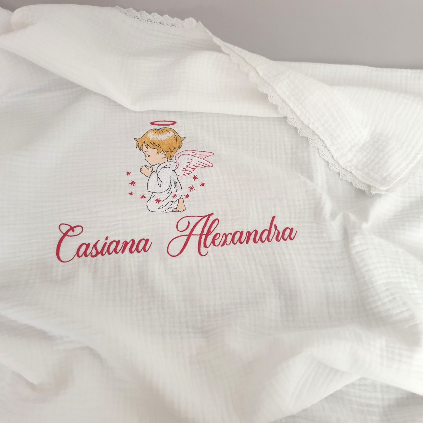 Paturica este personalizata prin broderie cu fir de calitate superioara (ata nu se decoloreaza).