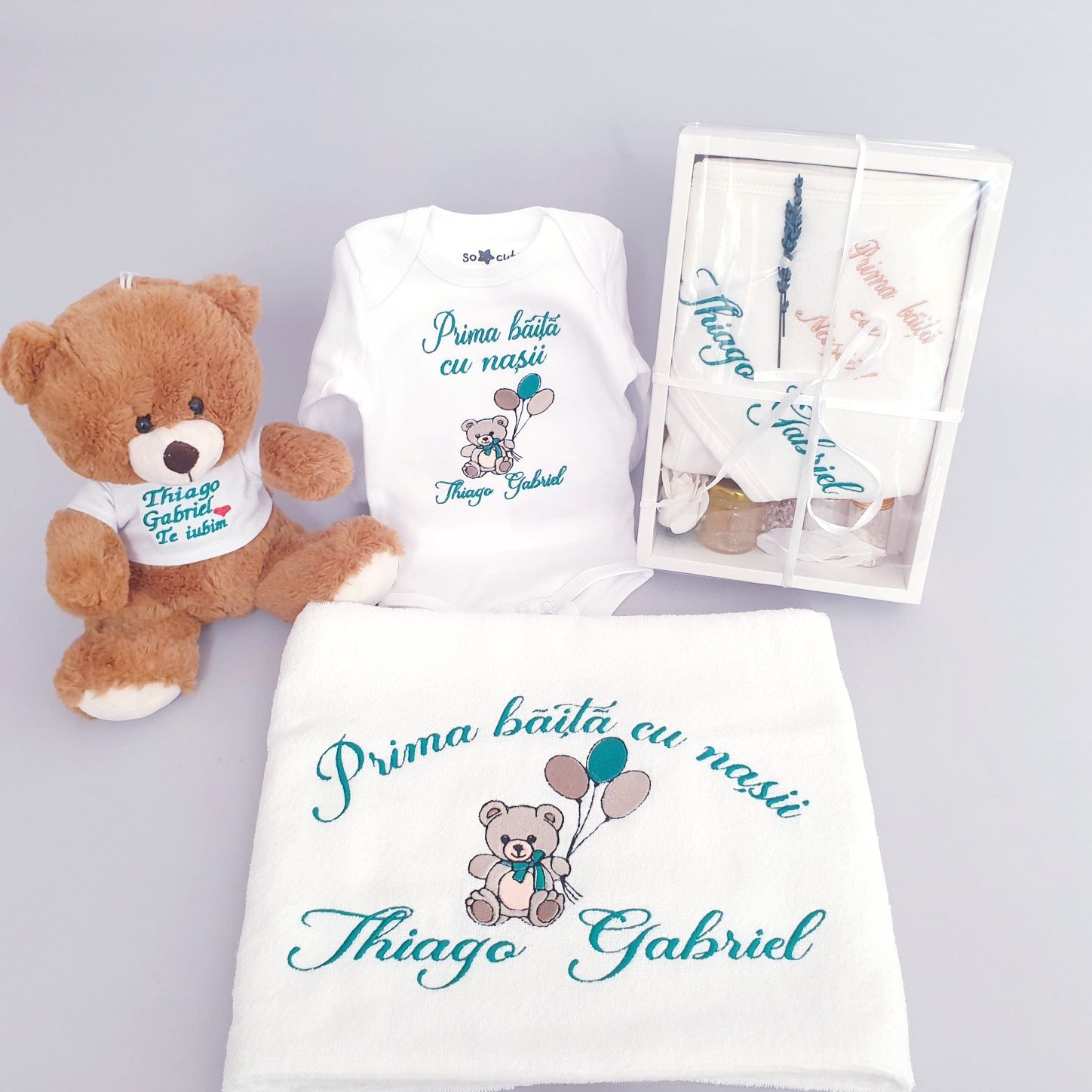 Toate produsele din set se personalizeaza cu numele dorit de dvs. prin confirmare telefonica dupa plasarea comenzii