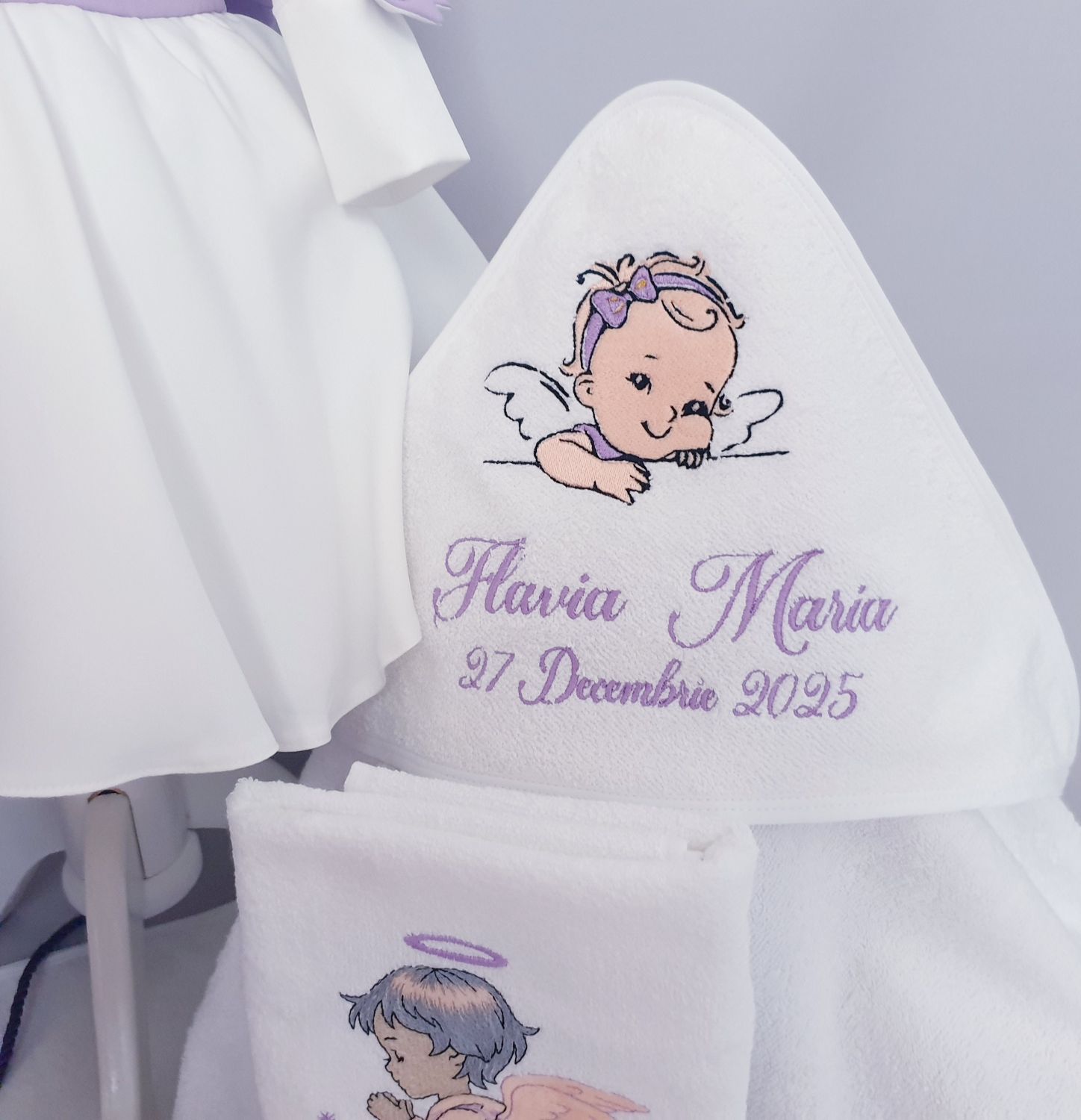 3. Prosop bebe cu capison , bumbac 100%,personalizat prin brodare cu imagine+nume +data(80x80cm )