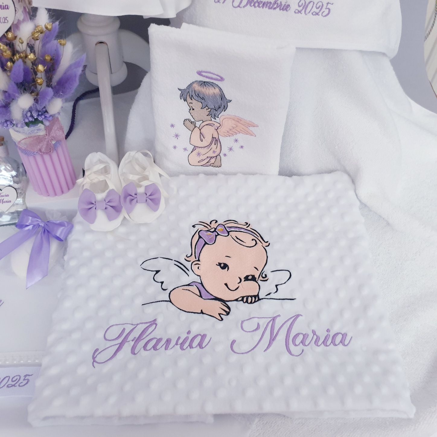 10.Paturica Minky alba personalizata prin broderie cu imagine+nume, 80x100cm. Paturica este confectionata la exterior, dintr-un material foarte moale si pufos placut la atingere in care copilul d-voastra se va simti minunat, iar la interior din bumbac uni. Compozitie:fata100%poliester,interior 100%bumbac