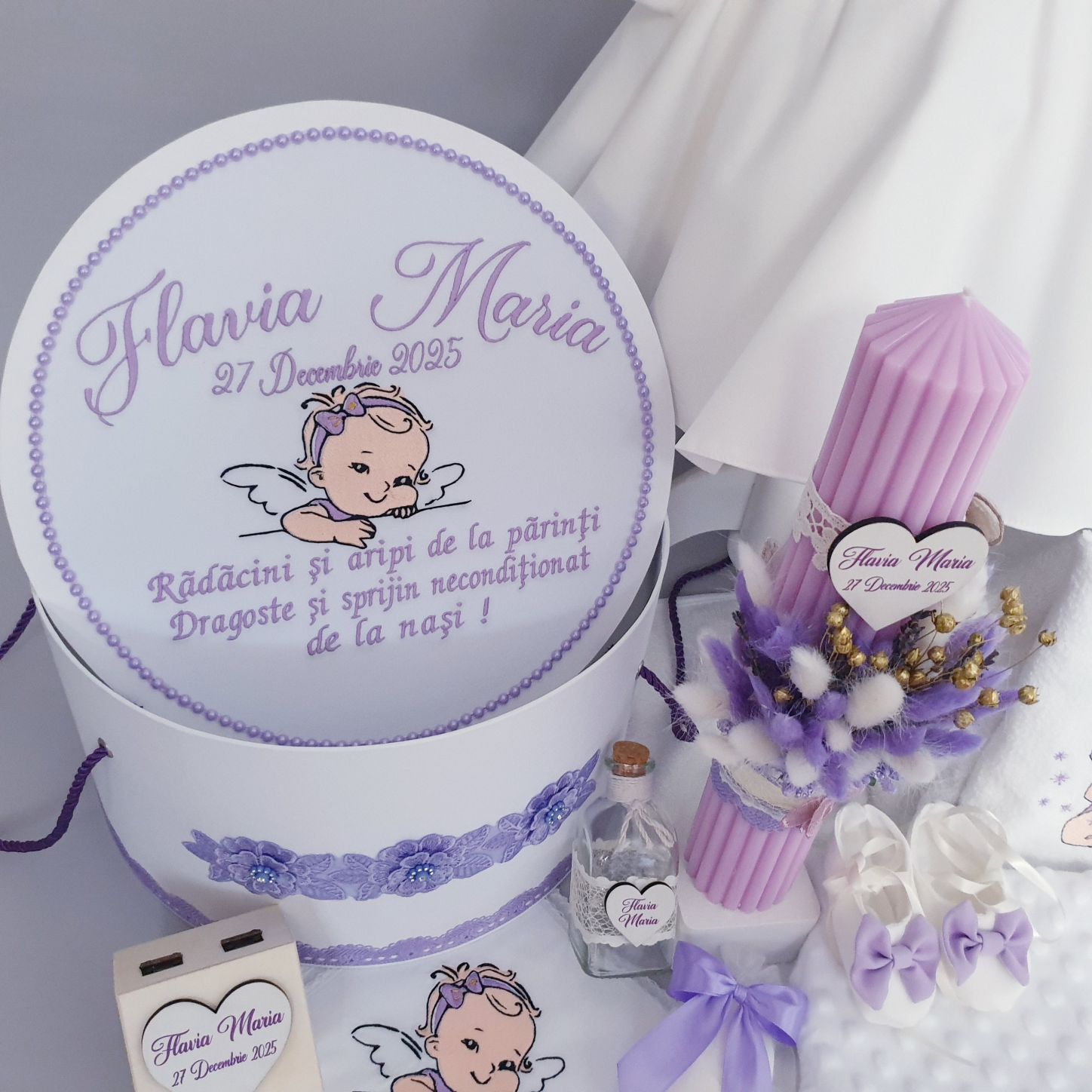 Cutia este special creata pentru transportul trusoului de botez si a hainutelor bebelusului.
