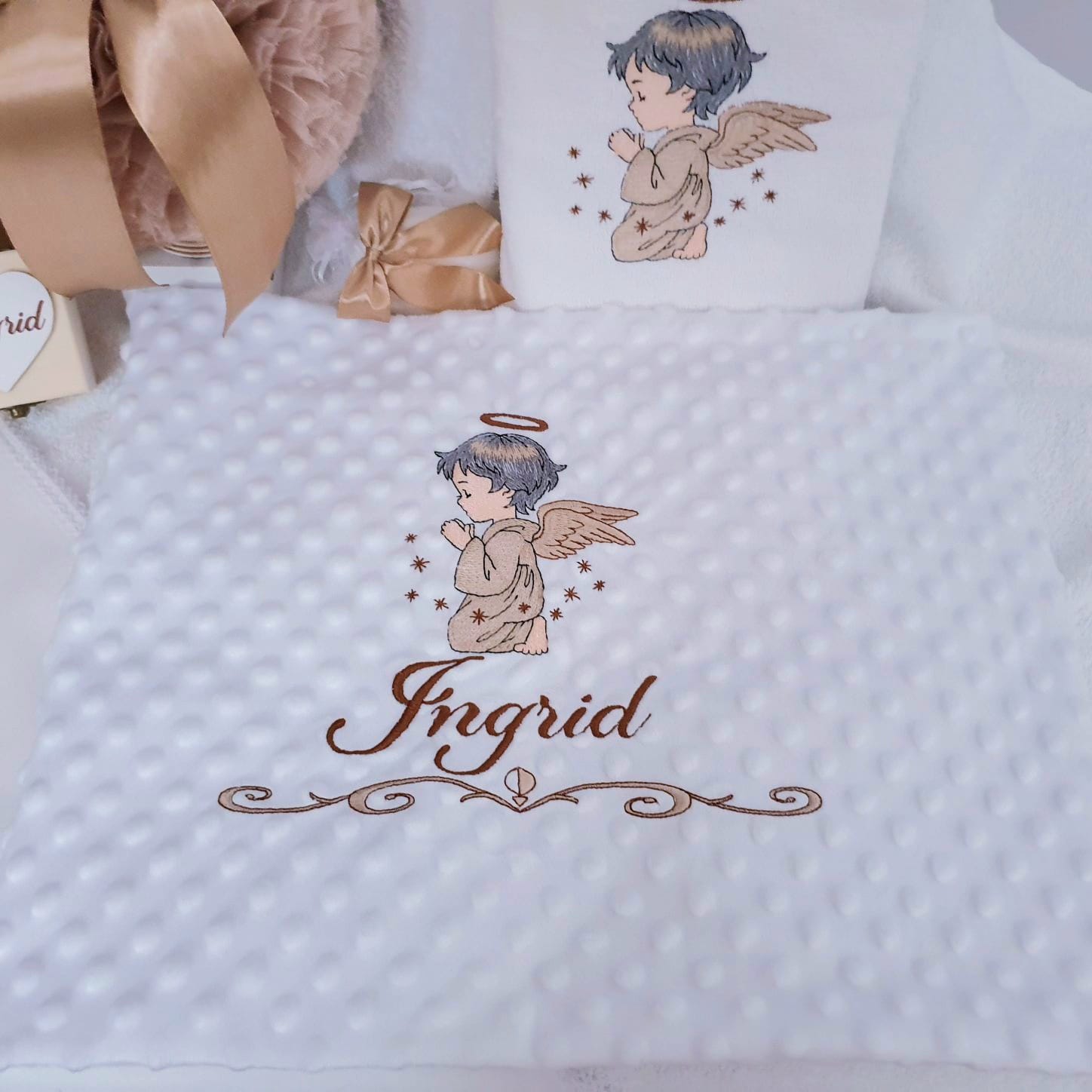 6.Paturica Minky alba personalizata prin brodare cu imagine+nume (80x100cm)