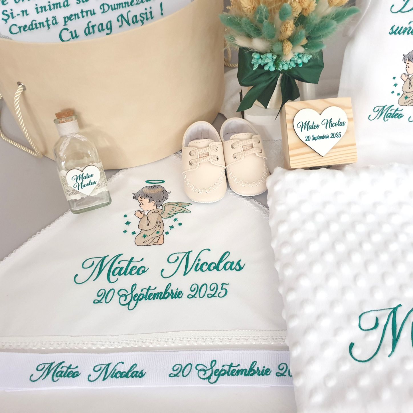 Cutia este special creata pentru transportul trusoului de botez si a hainutelor bebelusului.