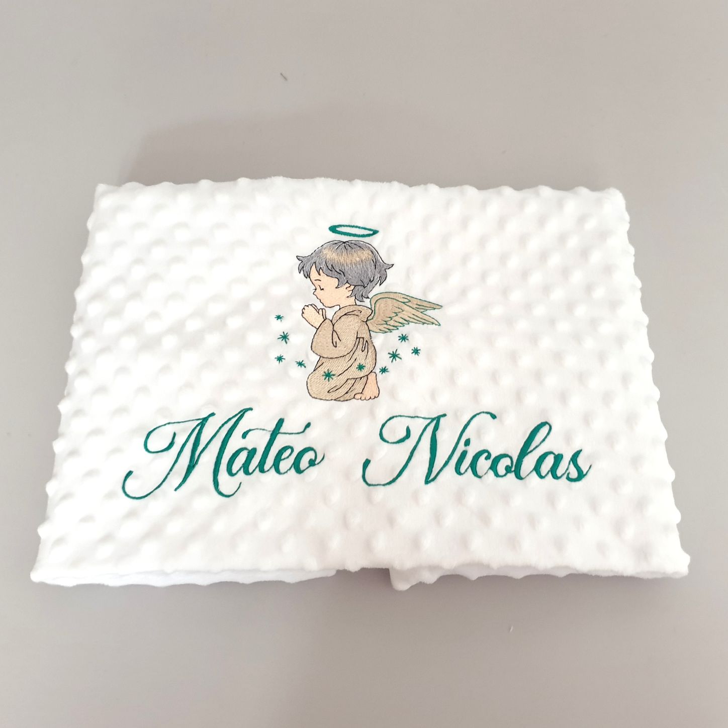 6.Paturica Minky alba personalizata,imagine+nume+mesaj nasi (80x100cm)