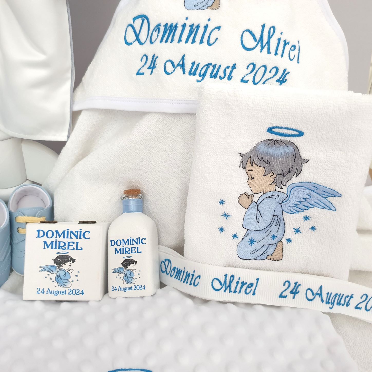3. Prosop bebe cu capison,bumbac 100%,personalizat prin broderie cu imagine+nume (80x80cm )