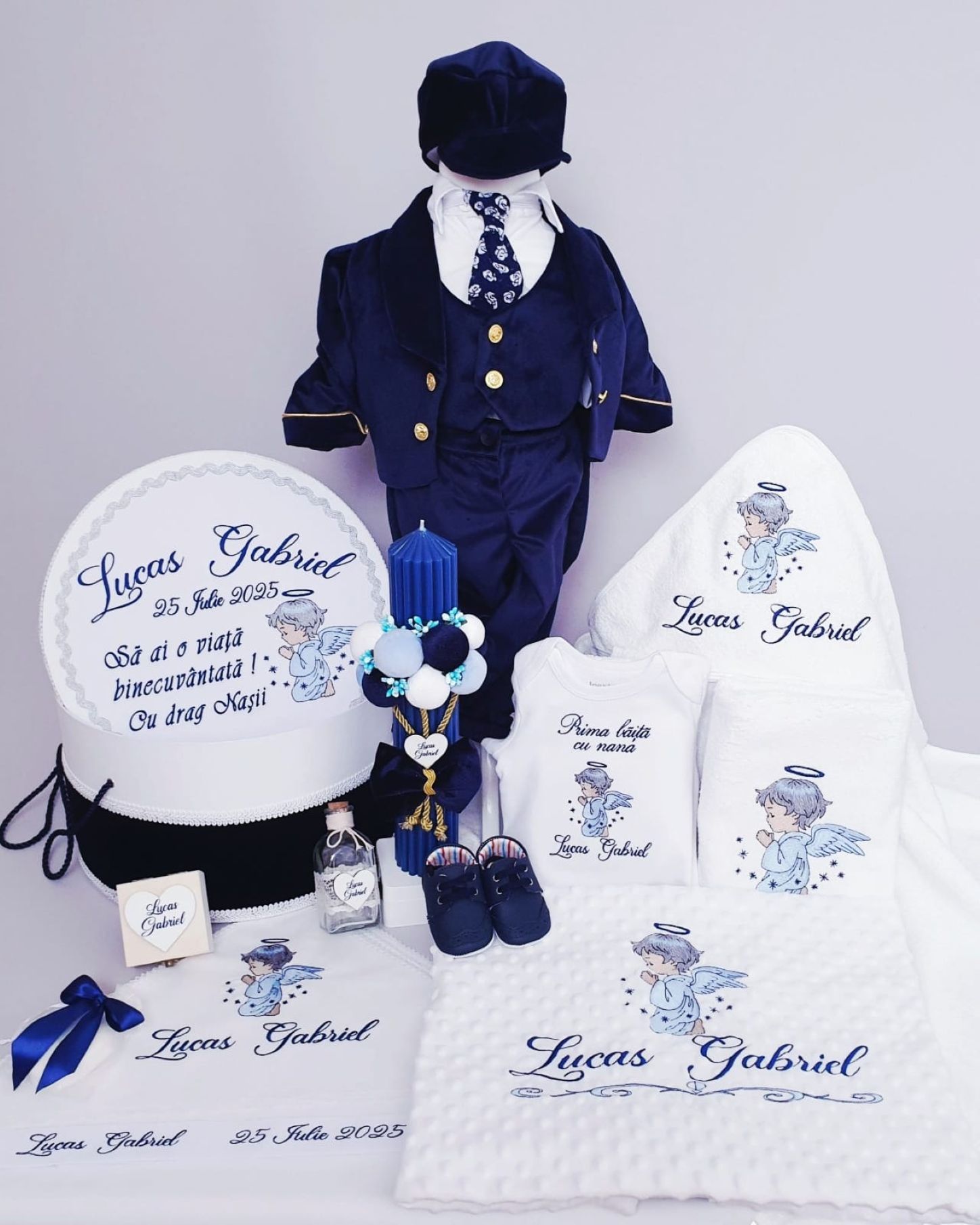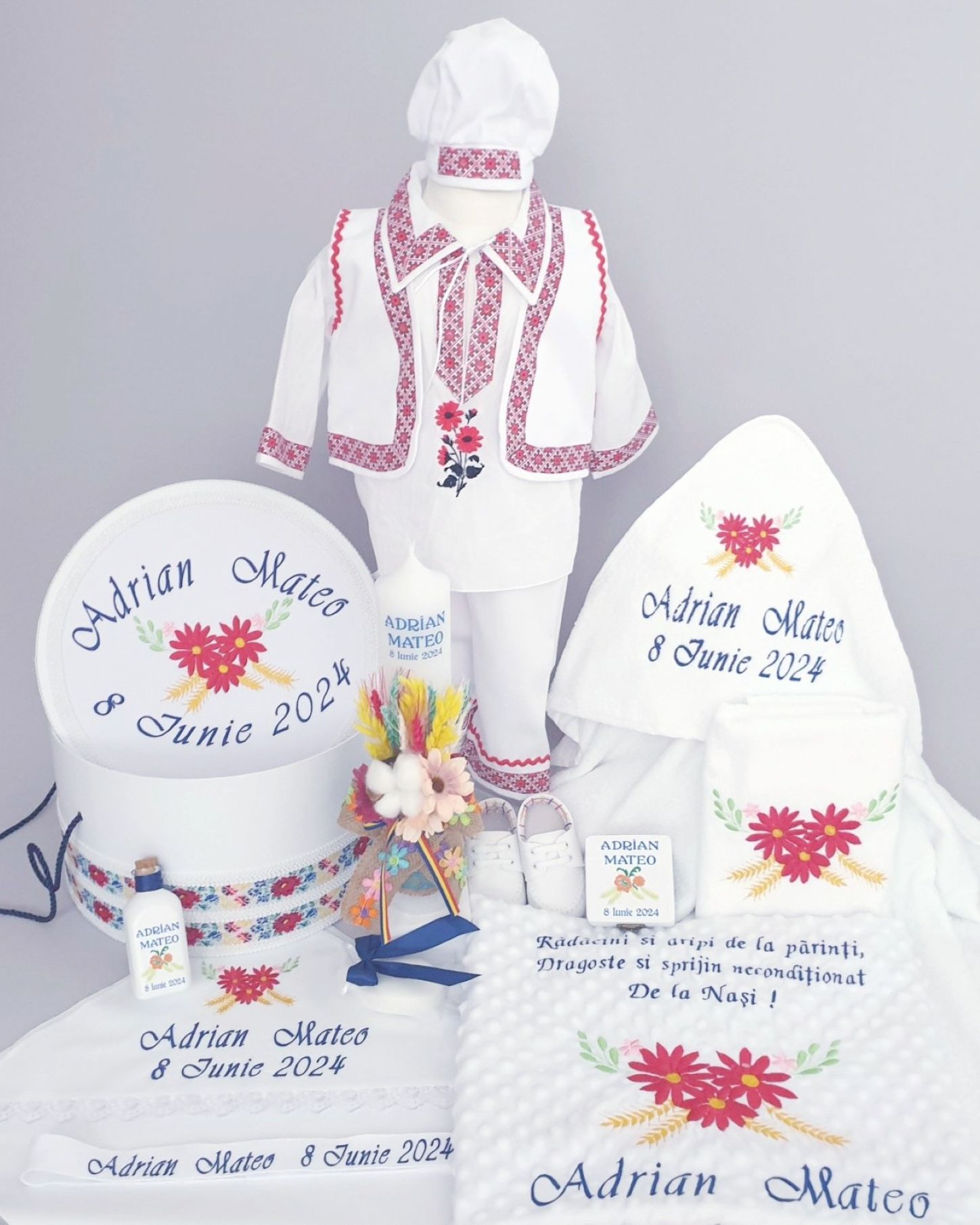 Toate produsele din set se personalizeaza cu numele dorit de dvs. prin confirmare telefonica dupa plasarea comenzii