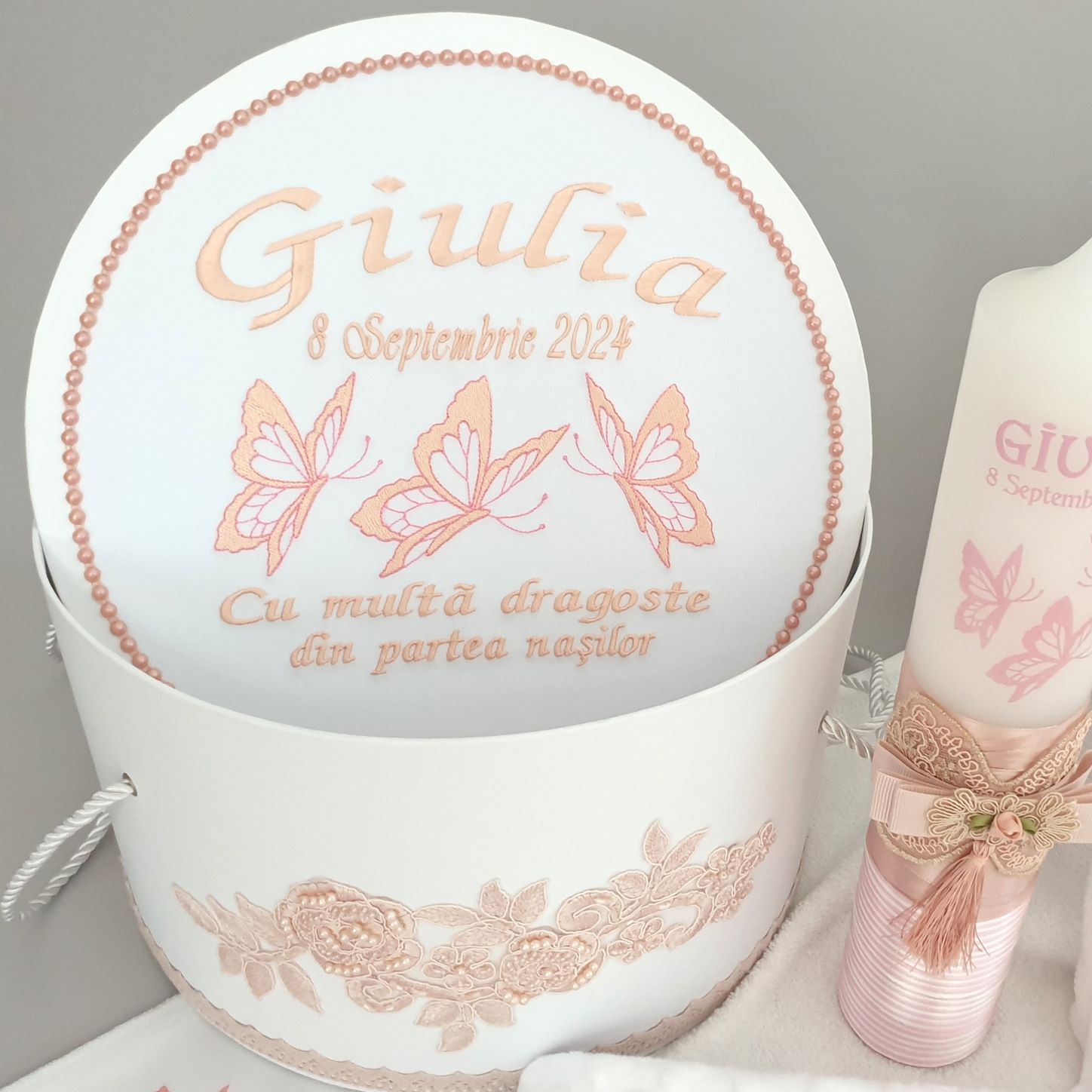 Cutia este special creata pentru transportul trusoului de botez si a hainutelor bebelusului.