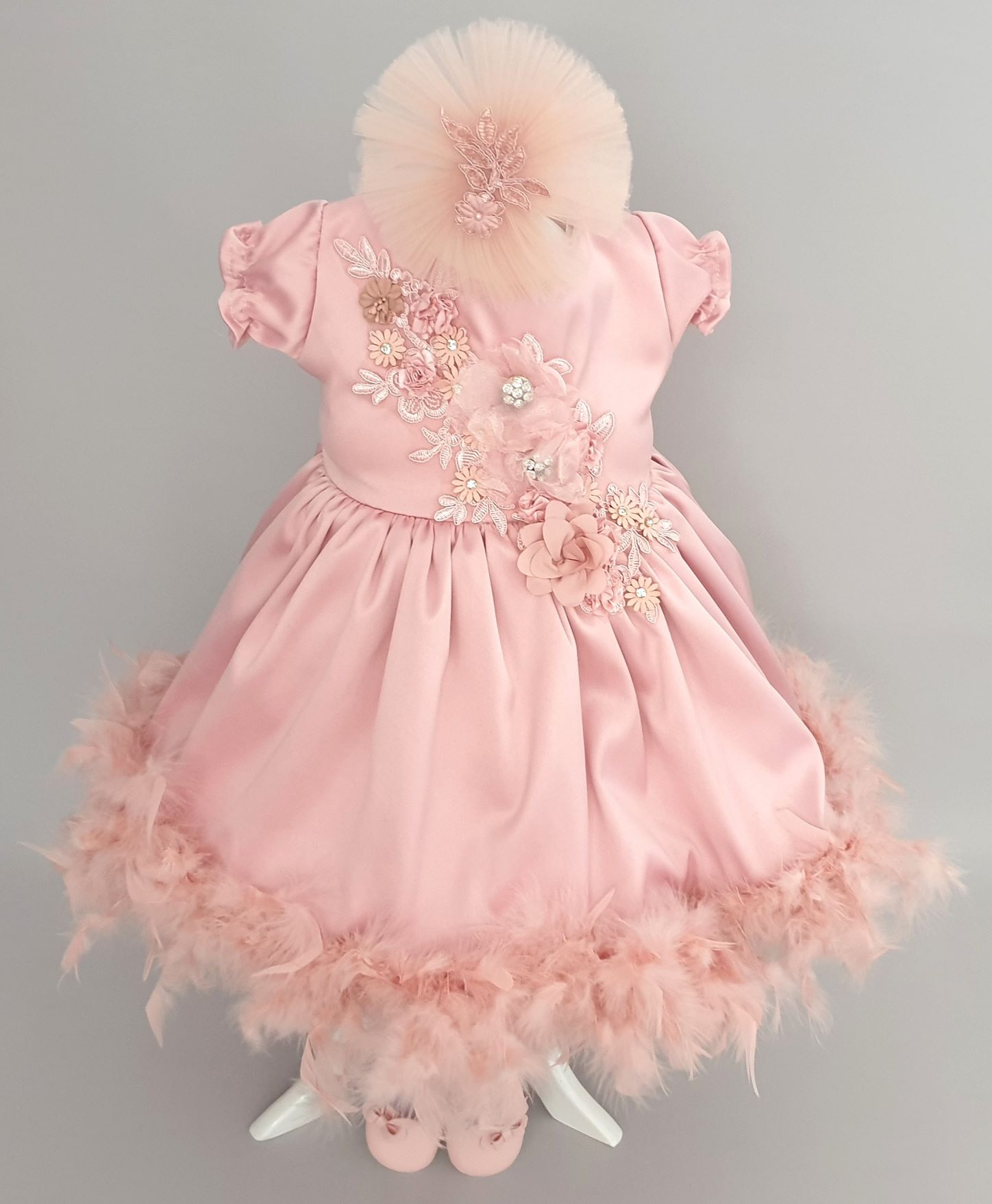 13.Rochita Botez Fete cu Pene Pudra.Rochita perfecta pentru ceremonia de botez a micutei tale aduce un amestec subtil de eleganta si feminitate, evidentiind momentul special al acestei ocazii memorabile. Confectionata dintr-un material fin si moale, rochita este delicata la atingere, oferind confort si libertate de miscare pentru bebelusul tau. Designul rafinat al rochitei este completat de accesorizari subtile, iar penele adauga o nota de gratie si sofisticare.