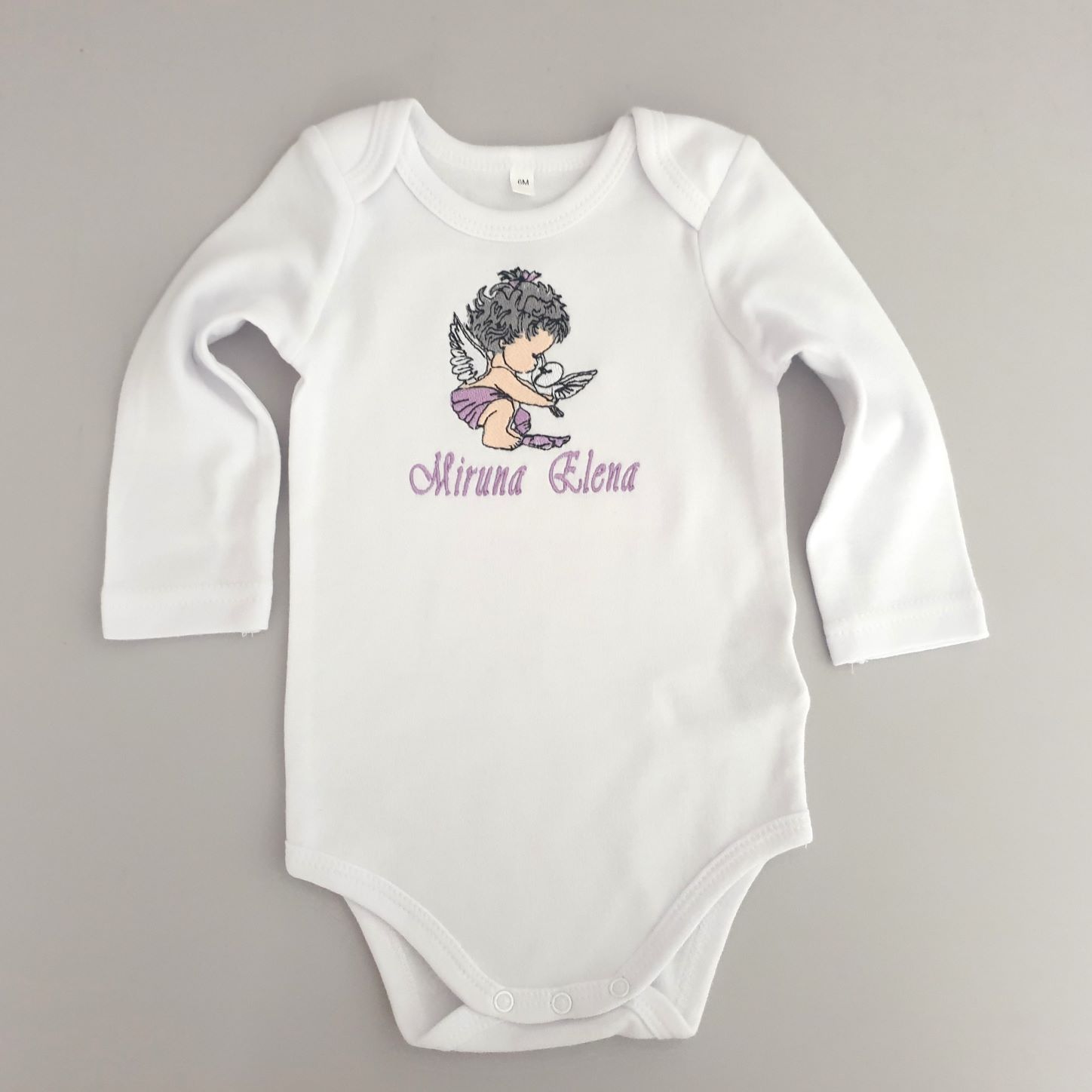 10.Body maneca lunga sau scurta personalizat cu imagine si nume,din bumbac organic.Body se inchide in partea de jos cu 3 capse.(Dimensiuni body:56,62,68,74,80,86)