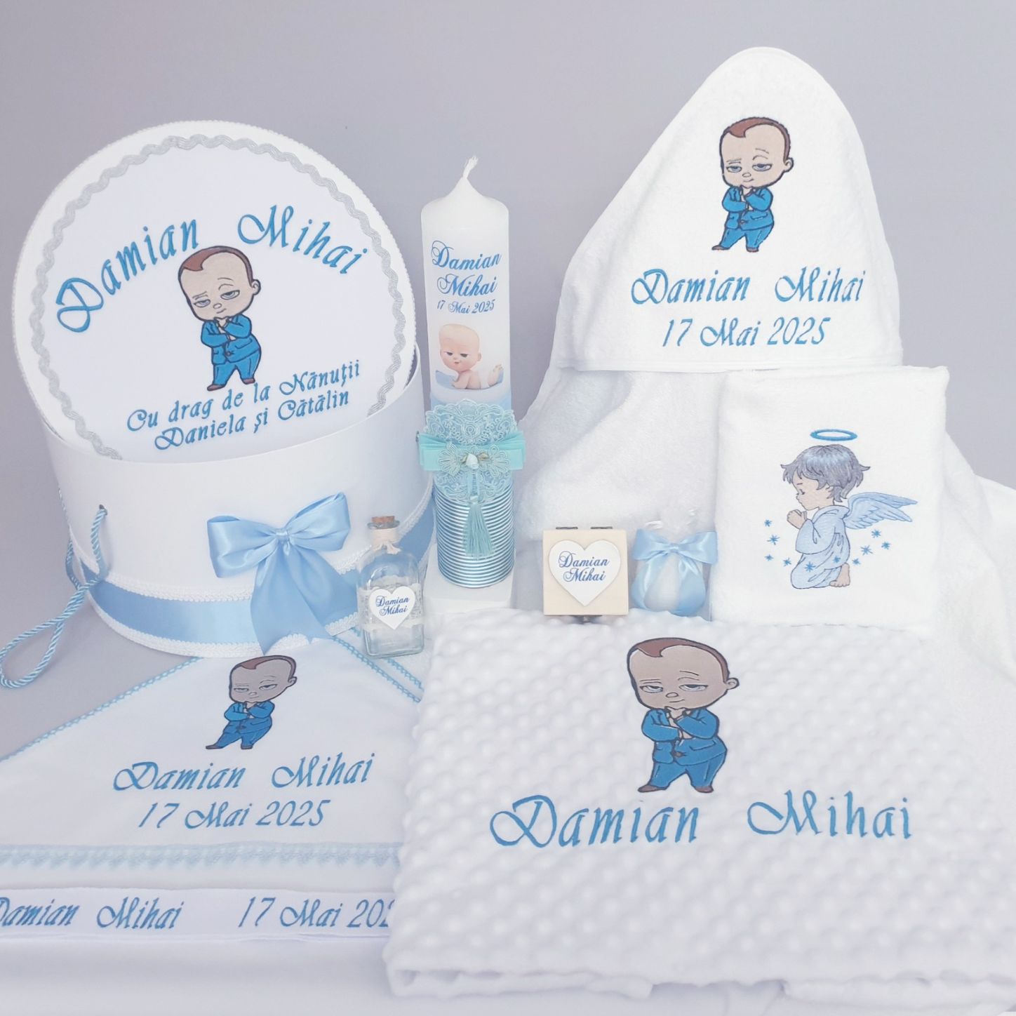 Cutia este special creata pentru transportul trusoului de botez si a hainutelor bebelusului.