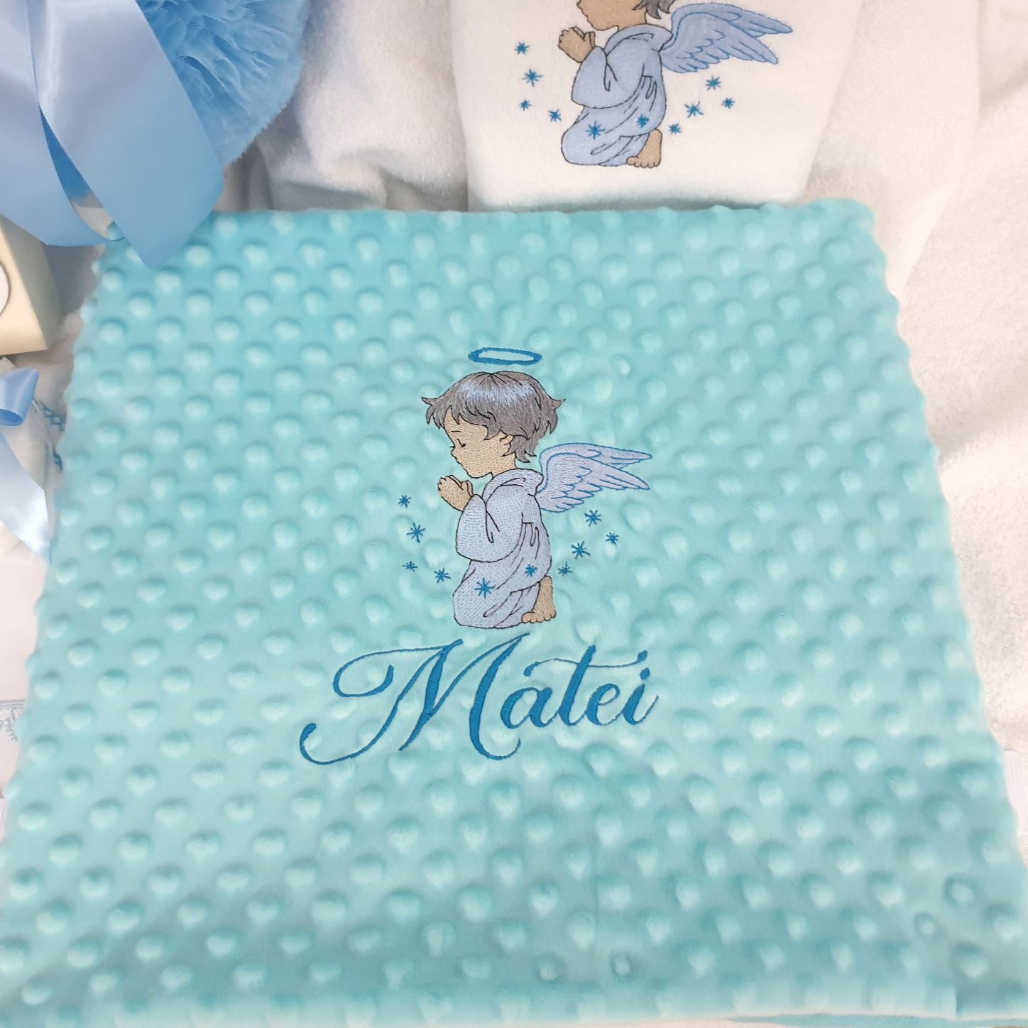 6.Paturica Minky turcoaz personalizata,imagine+nume (80x100cm)