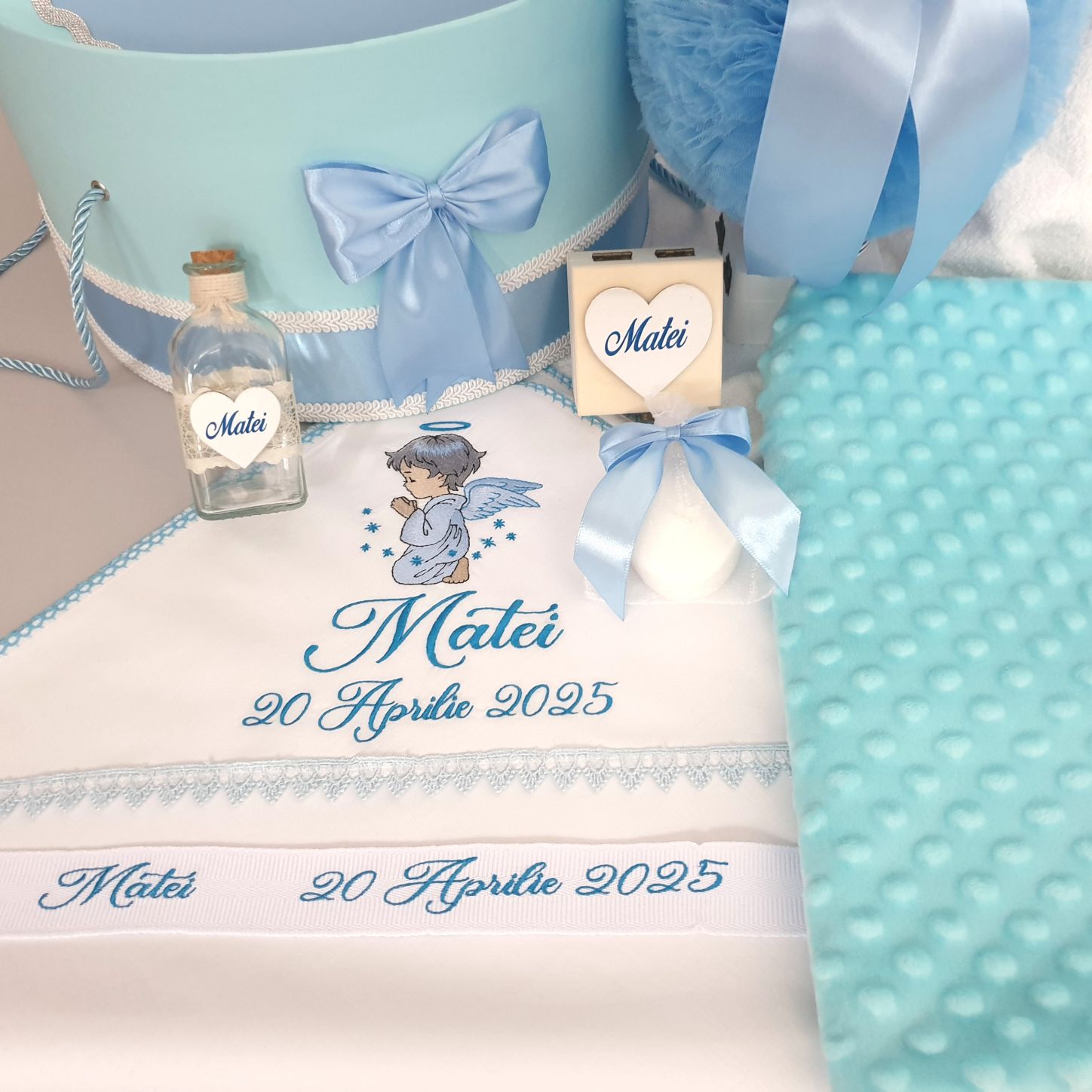 Cutia este special creata pentru transportul trusoului de botez si a hainutelor bebelusului.