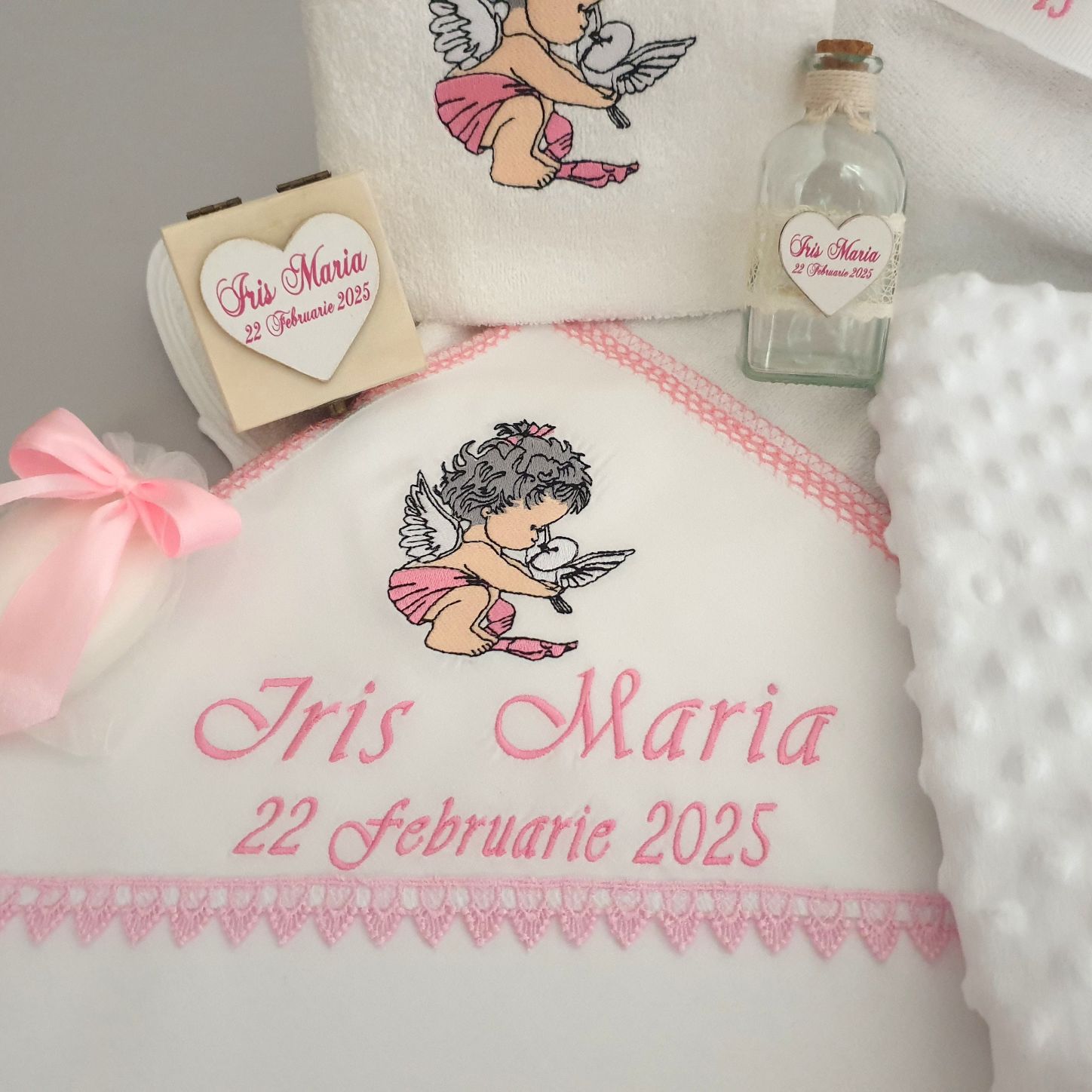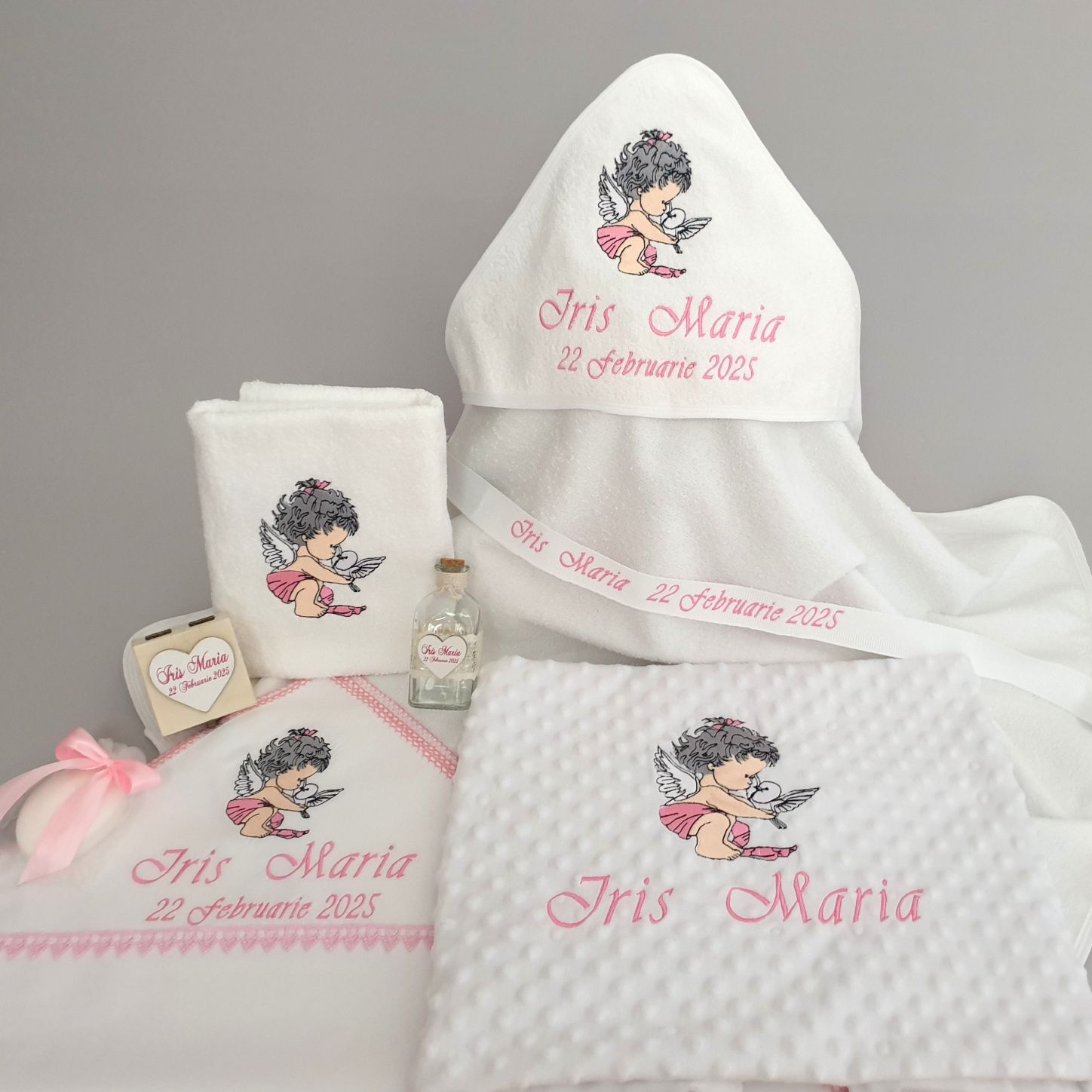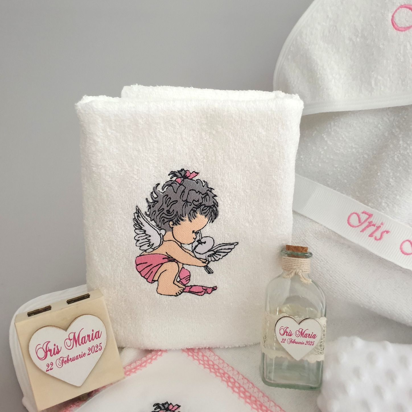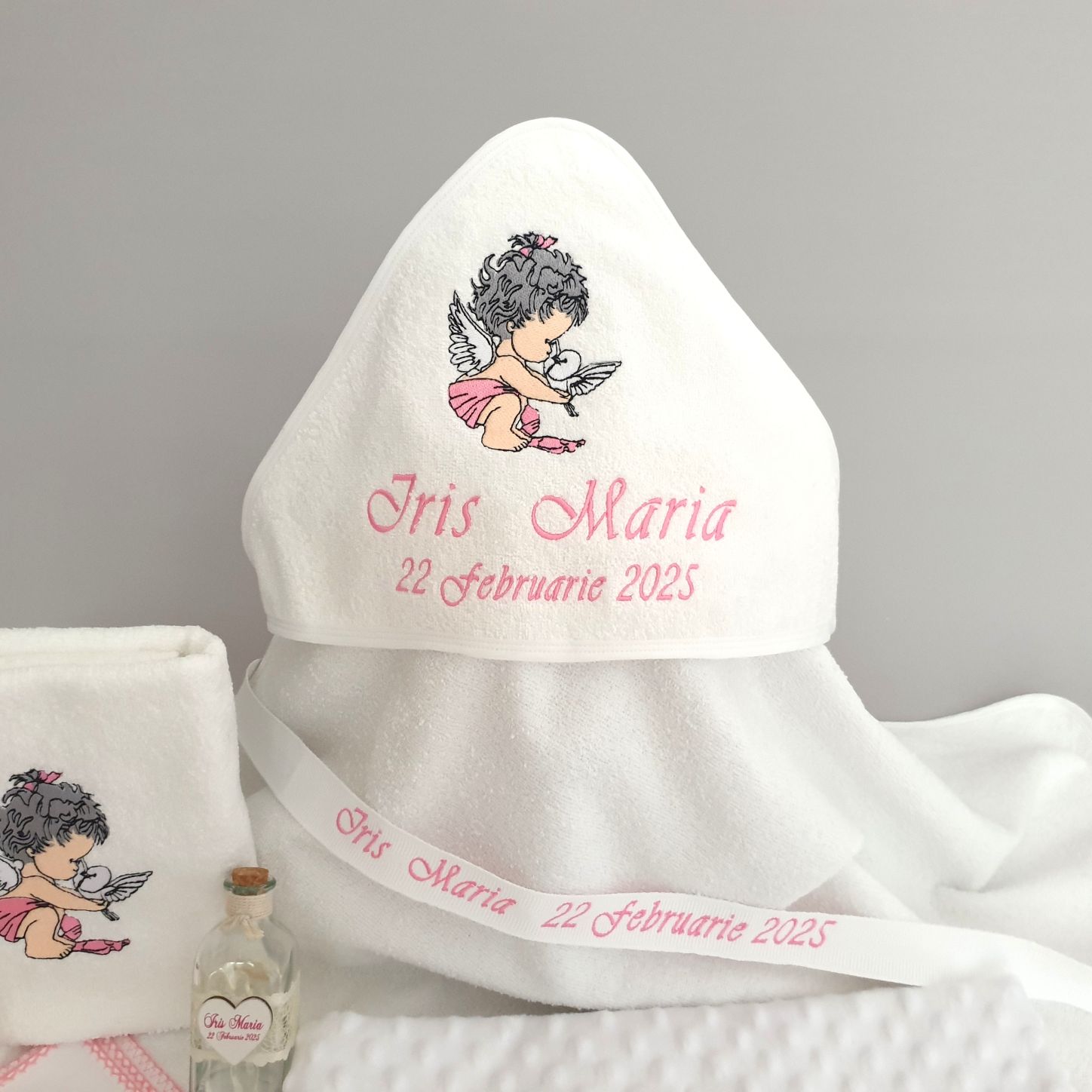 2. Prosop bebe cu capison 80×80, bumbac 100%,personalizat prin broderie cu imagine+nume+data evenimentului(sau data nasterii)