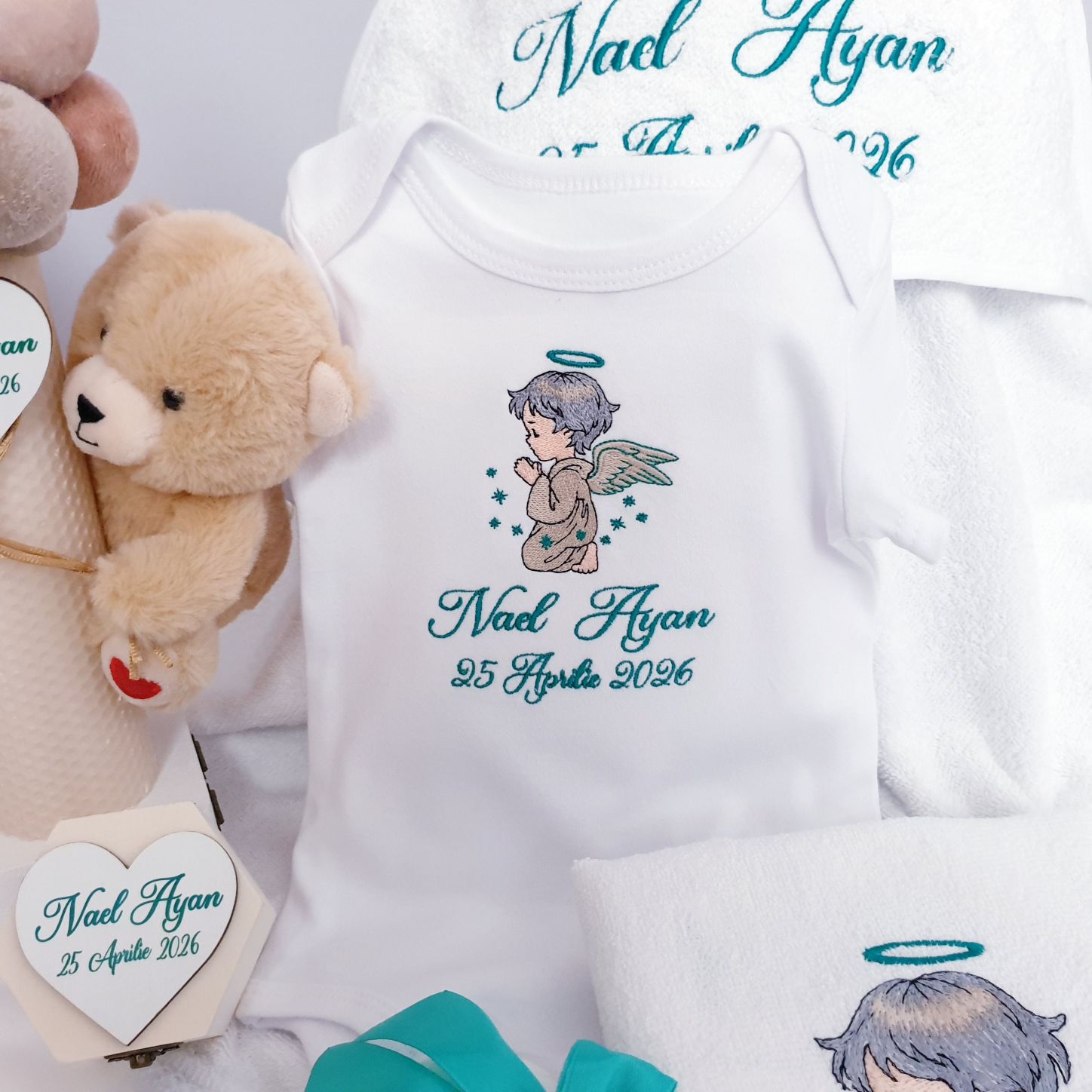 10.Body maneca lunga sau scurta personalizat cu imagine+nume+data evenimentului(sau data nasterii),din bumbac organic.Body se inchide in partea de jos cu 3 capse.(Dimensiuni body:56,62,68,74,80,86,92,98)