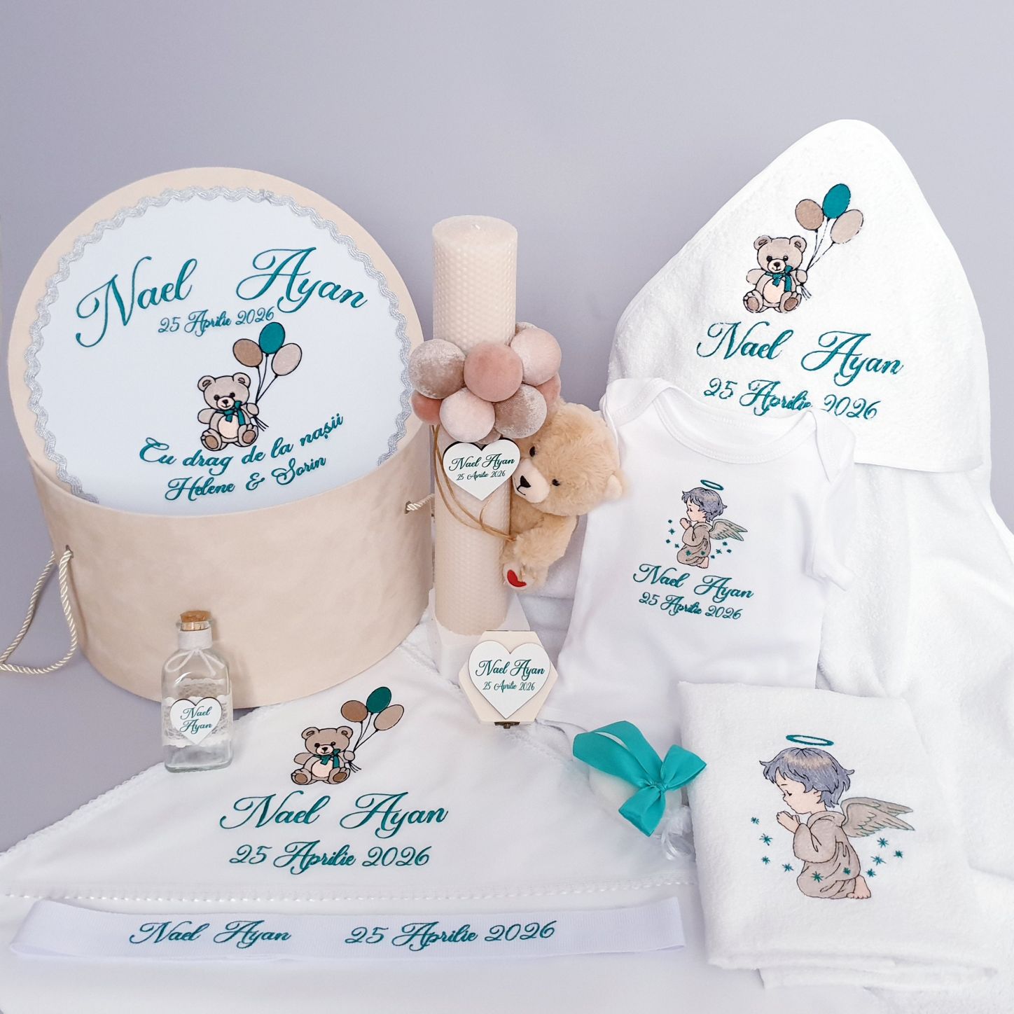 Cutia este special creata pentru transportul trusoului de botez si a hainutelor bebelusului.